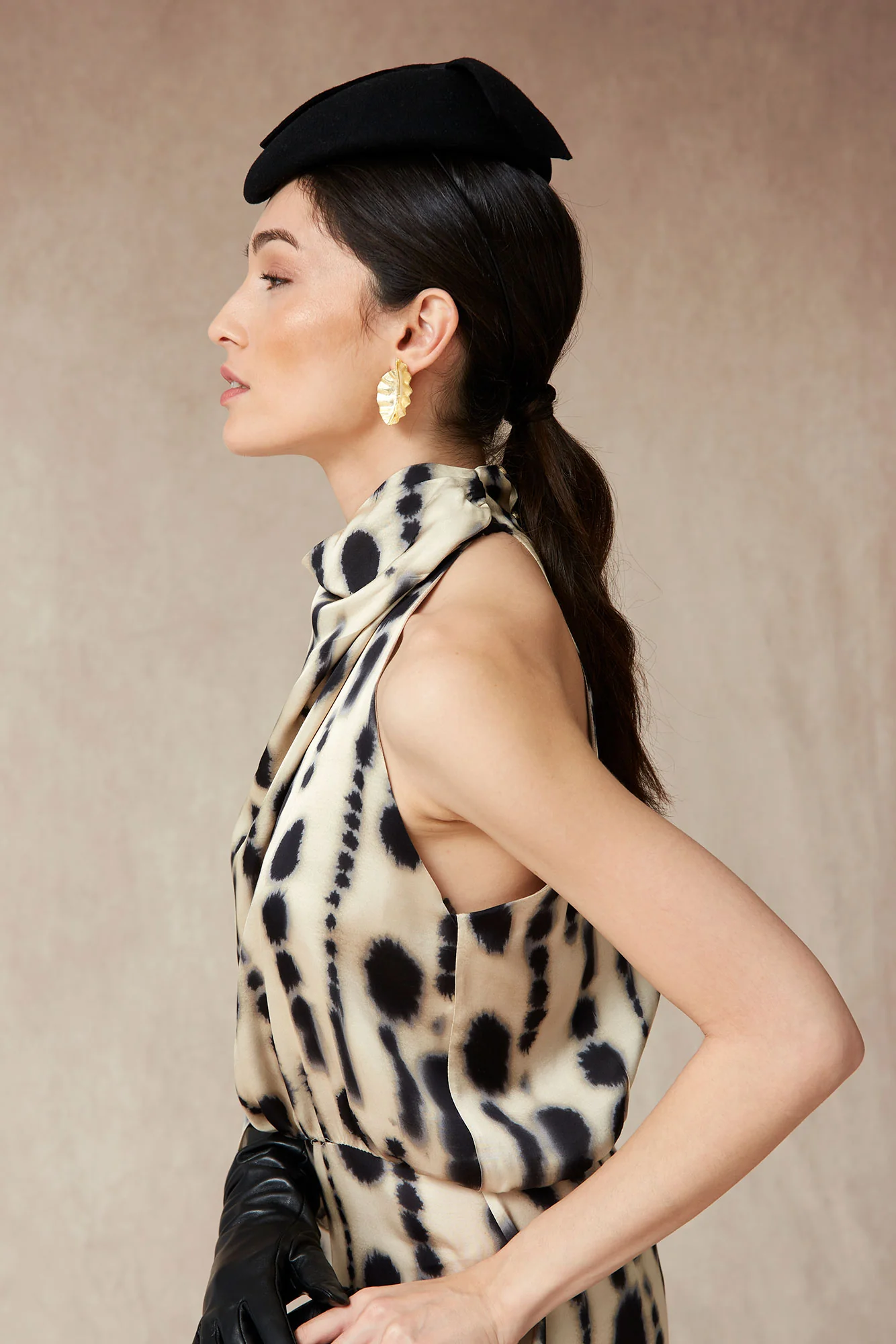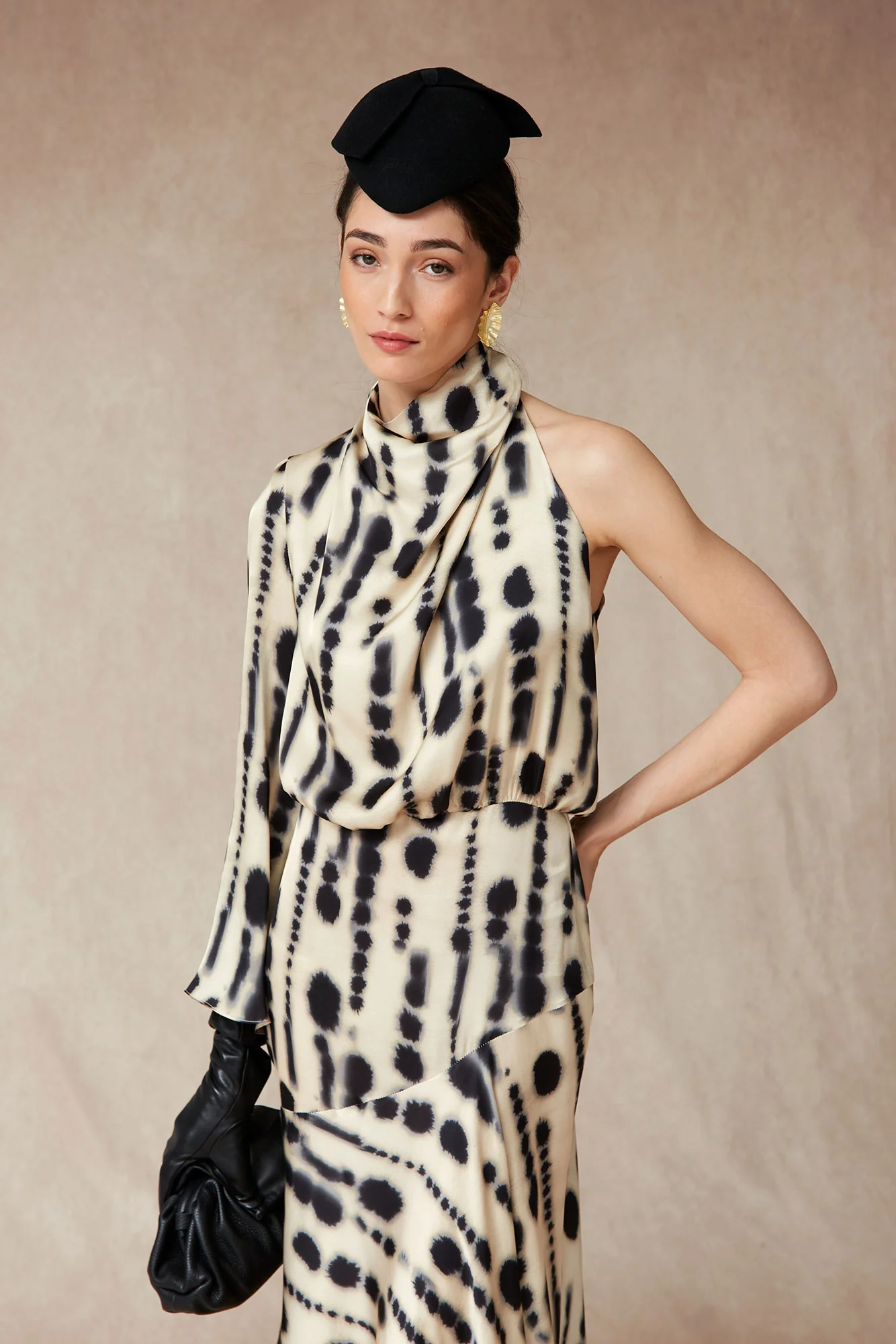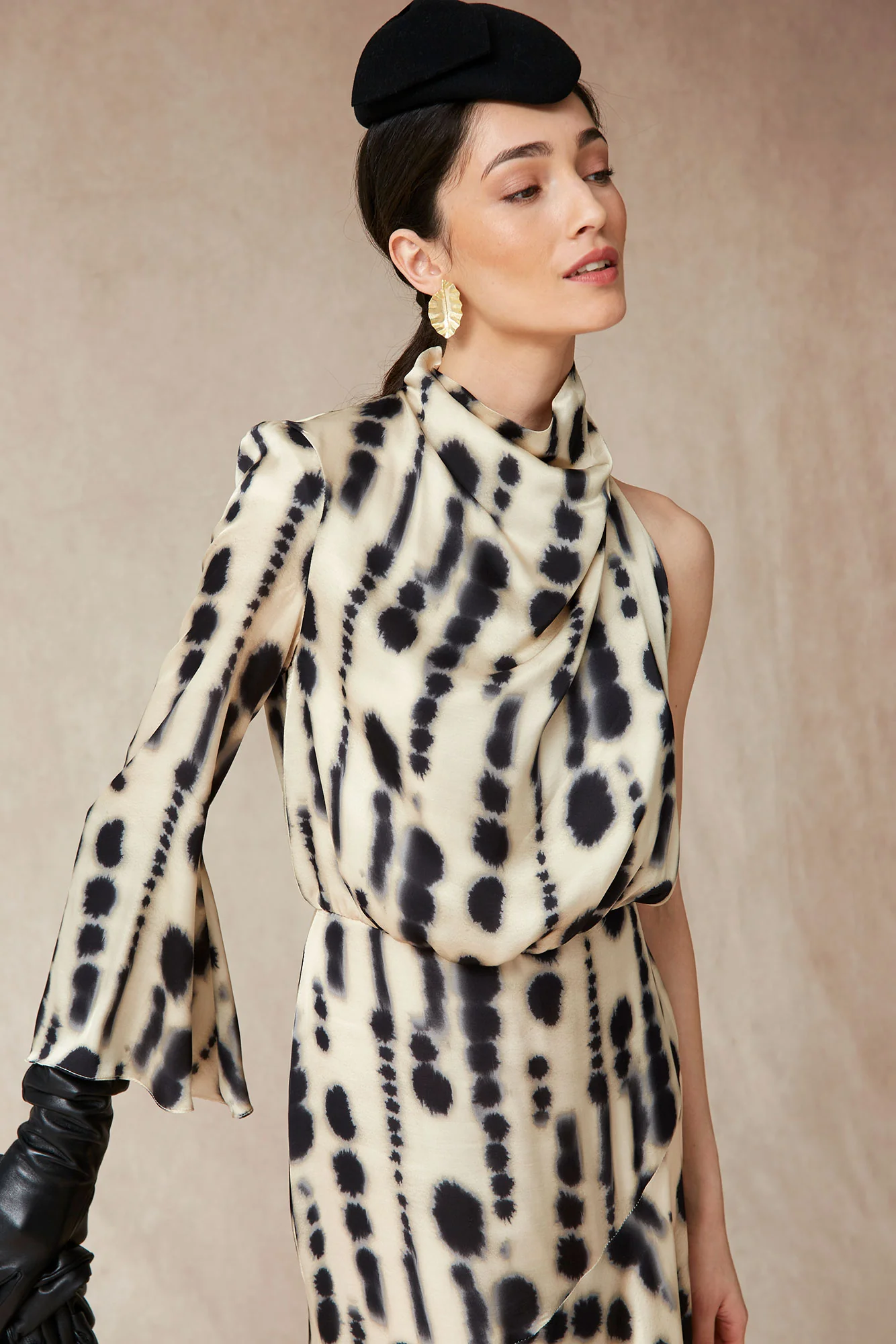El Vestido Penny de Coosy es la elección perfecta para invitadas que buscan elegancia contemporánea con un toque diferencial. Confeccionado en un tejido fluido de alta caída, destaca por su estampado orgánico en tonos neutros, ideal para eventos de otoño e invierno.