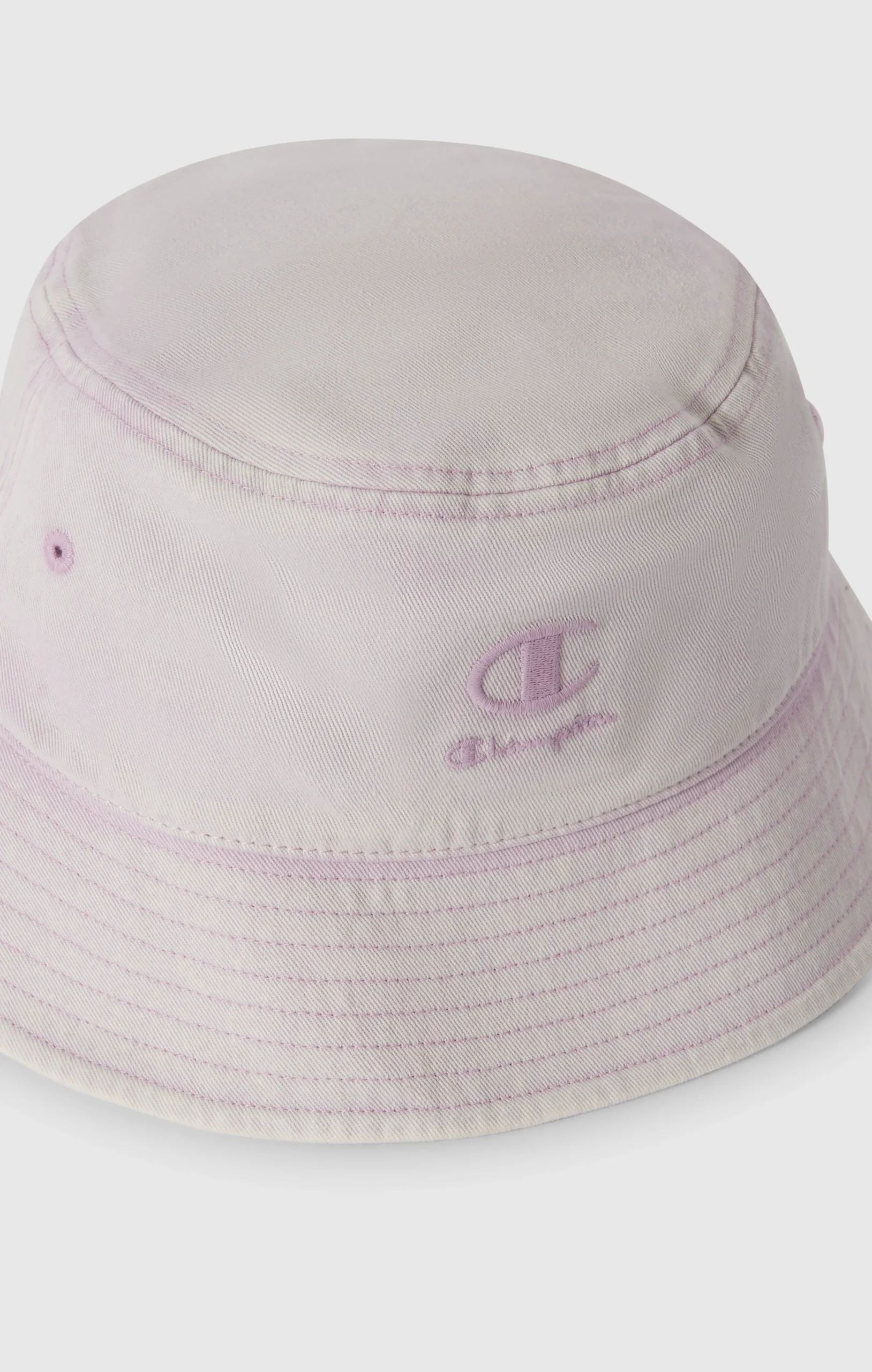 This bucket hat is crafted from 290 g/m² cotton, a compact and structured fabric that ensures durability and a substantial hand feel. The garment-dyed treatment with acid wash, enzymes and softener creates a washed effect with a slightly worn appearance and enhanced softness. The clean design with a short brim reflects an authentic sportswear aesthetic, ideal for casual and urban looks.@@@Fabric: cotton |Composition: 100% Cotton |Weight: 290 g/m² |Washed effect |Champion logo embroidered on the front