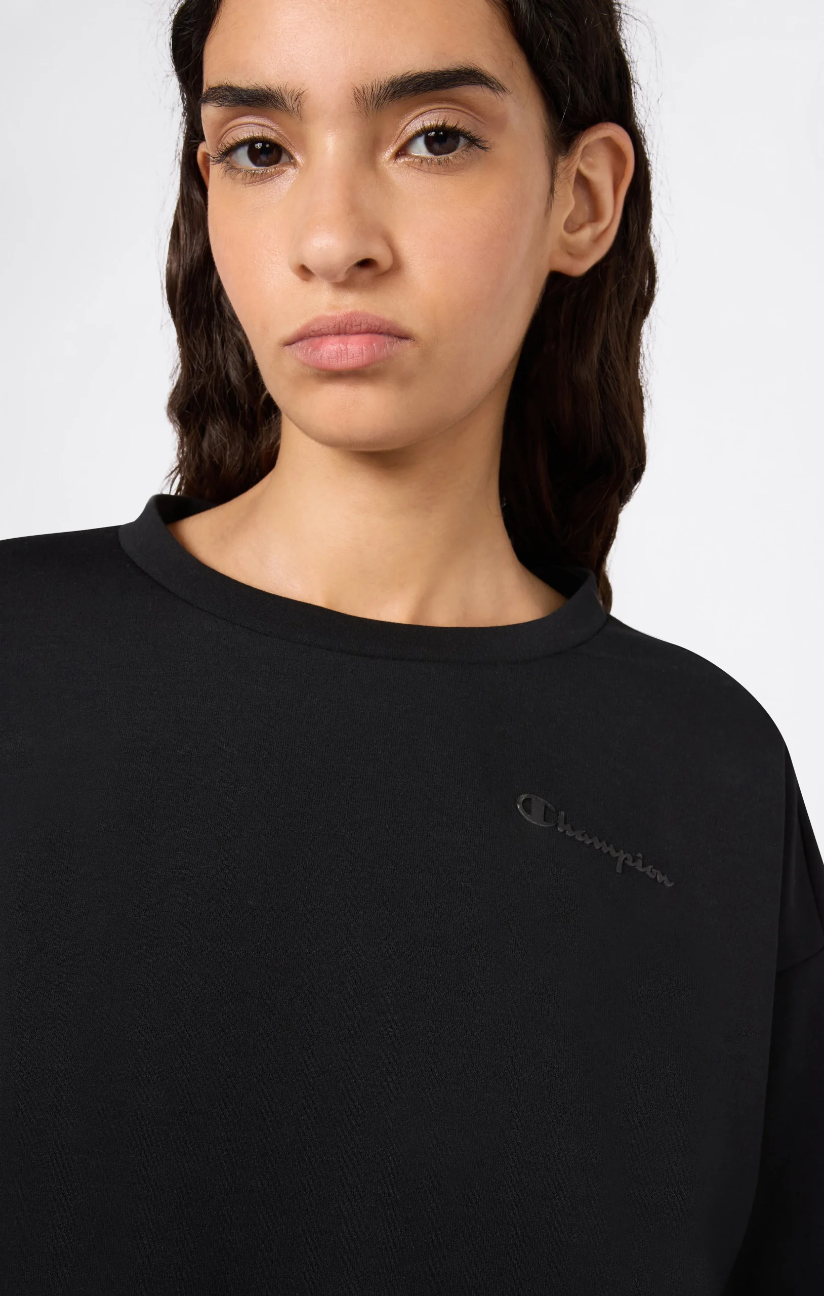 This women’s crewneck sweatshirt combines clean design and smart functionality. Made from stretch interlock fabric, it features a standard fit with regular shoulders and a versatile cut that follows the body’s lines without clinging. The adjustable hem with drawstring allows you to personalize the fit, while ergonomic sleeve details add a contemporary touch. Designed to accompany your daily movements with comfort and style, it’s perfect for facing the day with sporting determination.@@@Fabric: Stretch interlock – 360 g/m² |Composition: 69% Polyester, 26% Cotton, 5% Elastane |Adjustable hem with drawstring |Ergonomic sleeve cut |Tone-on-tone logo on chest and sleeve |Fit: Standard Fit – versatile and comfortable with standard width and length. Contours the body without clinging. Regular shoulder cut.