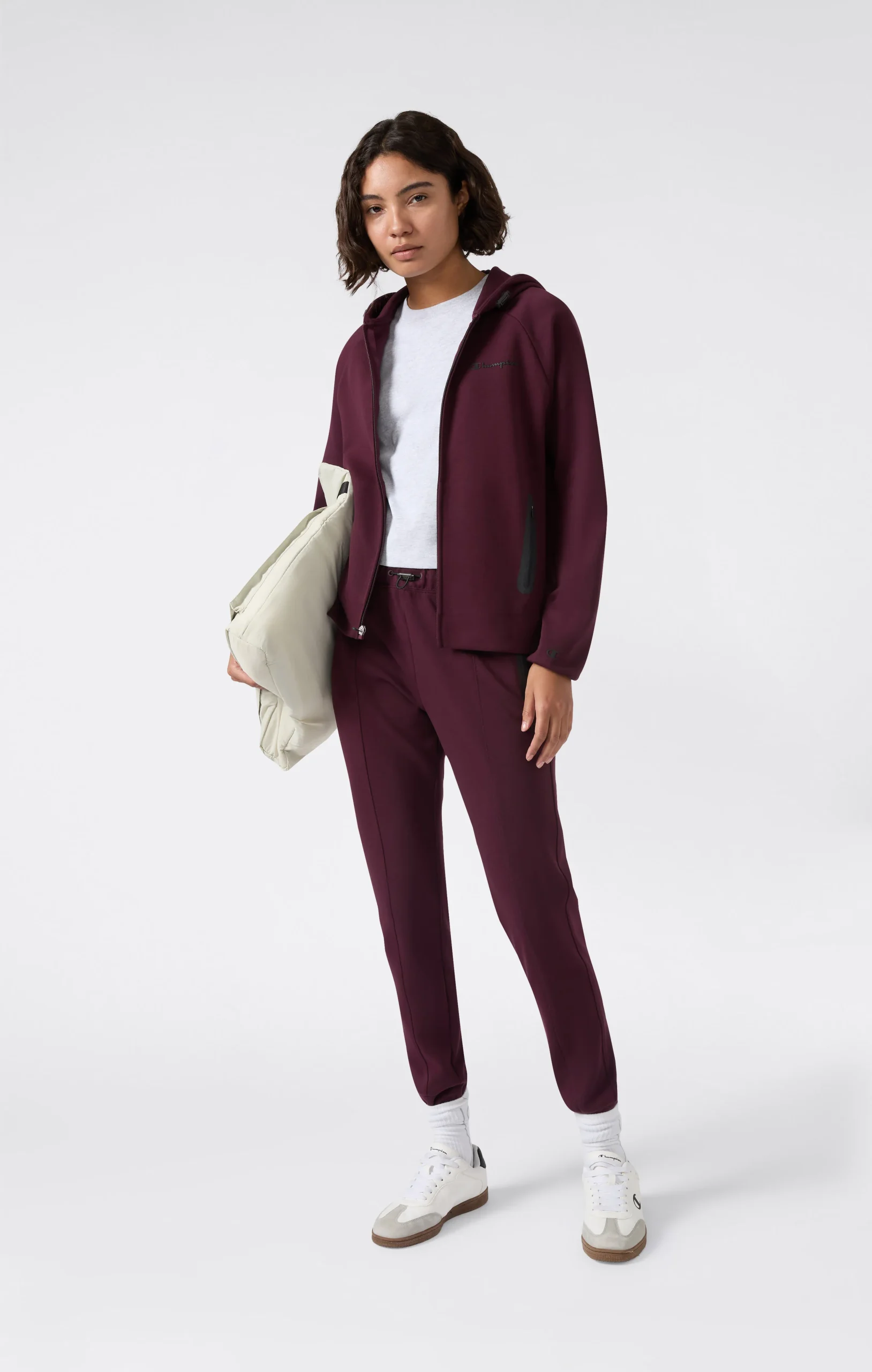 Women’s jogger pants with a slim fit, designed to support you with grit and style in everyday movements. The stretch interlock fabric offers comfort and freedom of movement, while the slim cut hugs the silhouette without constriction. Side zippered pockets add practicality and a technical look, making them ideal for urban outdoor activities as well.@@@Fabric: Stretch interlock – 360 g/m² |Composition: 69% Polyester, 26% Cotton, 5% Elastane |Side pockets with heat-sealed zips |Cuffed hem |Elastic waistband with drawcord |Tone-on-tone logo on the leg |Fit: Slim Fit – streamlined, hugs the body without feeling tight
