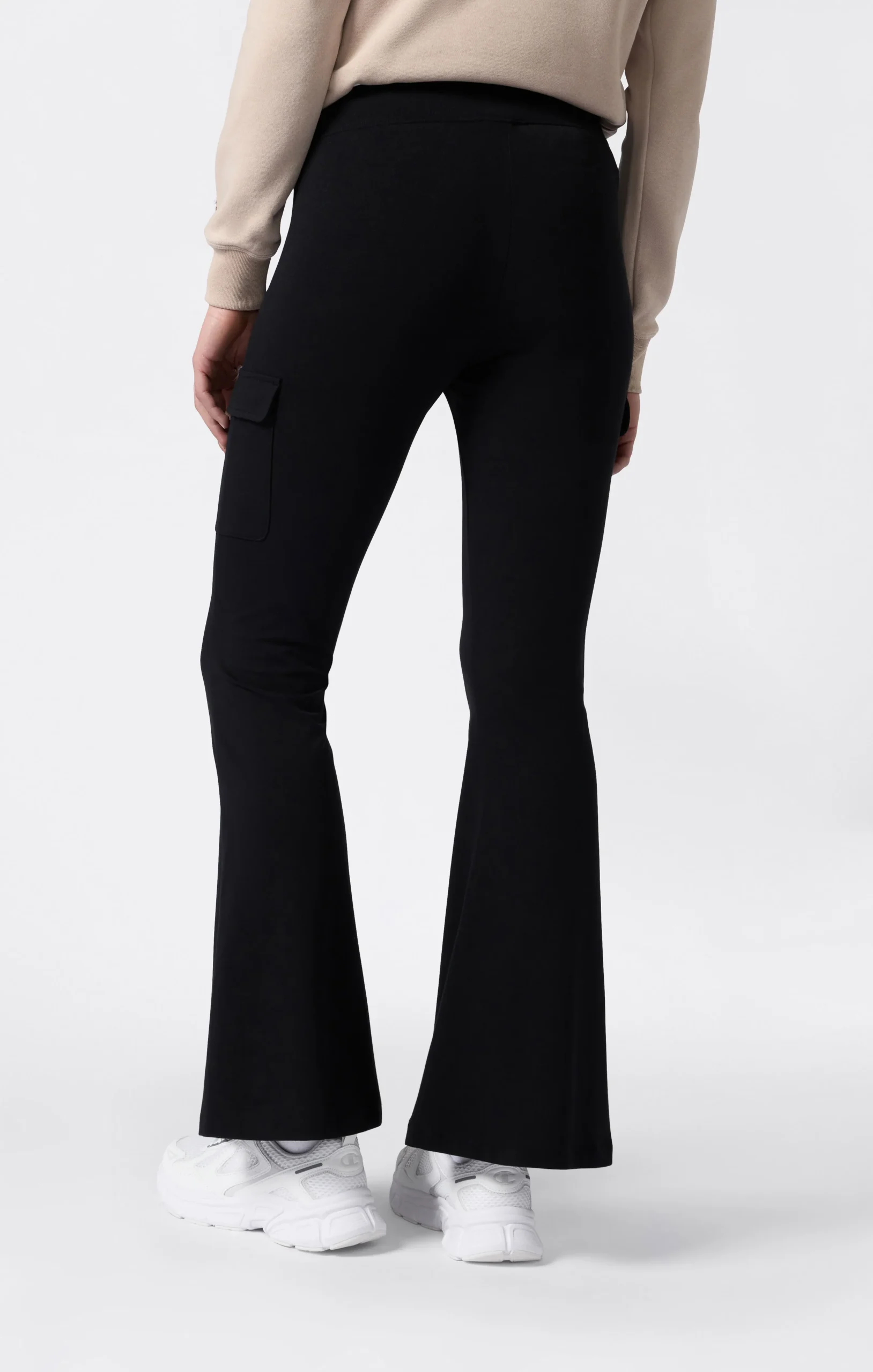 The flare cargo leggings from the Icons line blend utility inspiration with a retro attitude into a feminine and distinctive piece. The flared cut enhances the silhouette, while the patch pockets on the sides give a bold yet balanced look. Made from cotton stretch jersey, they ensure a slim and comfortable fit, perfect for completing your looks with a contemporary touch.@@@Fabric: Stretch cotton jersey – 230 g/m² |Composition: 90% Cotton, 10% Elastane |Side cargo pockets with flap |Flared hem |Embroidered C logo on the leg |Elasticated waistband |Fit: Fitted – Slim and close to the body.