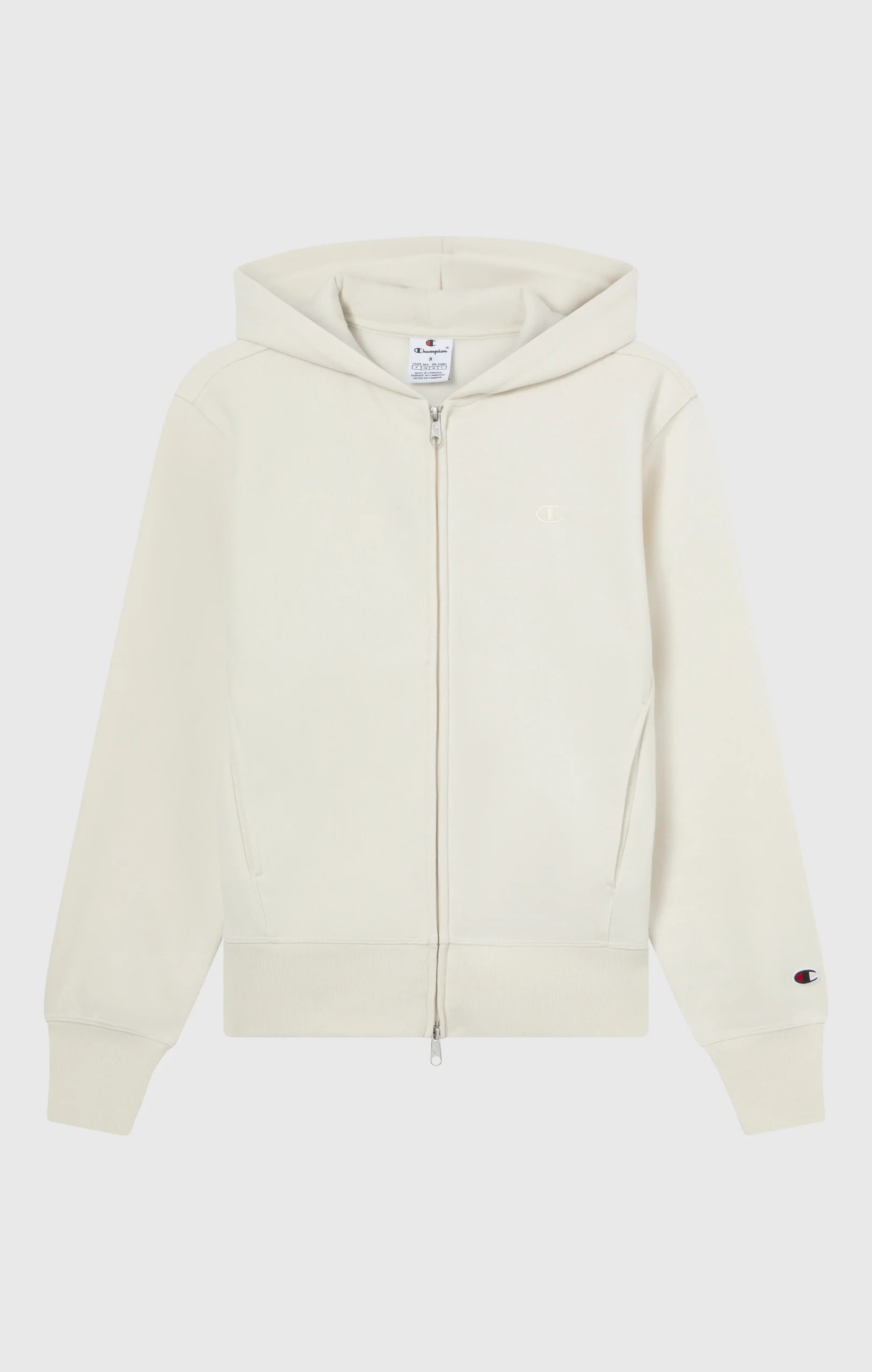 This Champion hoodie belongs to the Icons Tonal line, a selection of must-haves with a minimal and recognizable design. Made of Soft Compact Fleece (280 g/m²) with a brushed inside, it provides warmth, softness and durability. The Standard Fit ensures versatile comfort, while the adjustable hood and full zip increase functionality. The small tone-on-tone embroidered logo on the chest adds a distinctive touch without losing essentiality.@@@Composizione: 70% Cotone, 30% Poliestere |Tessuto: Soft Compact Fall Poly Fleece |Grammatura: 280 g/m² |Interno felpato |Cappuccio regolabile |Chiusura full zip |Tasche a marsupio |Logo ricamato tono su tono sul petto |Logo C ricamato sulla manica |Vestibilità: Standard Fit – versatile e confortevole, segue le linee del corpo senza segnarle