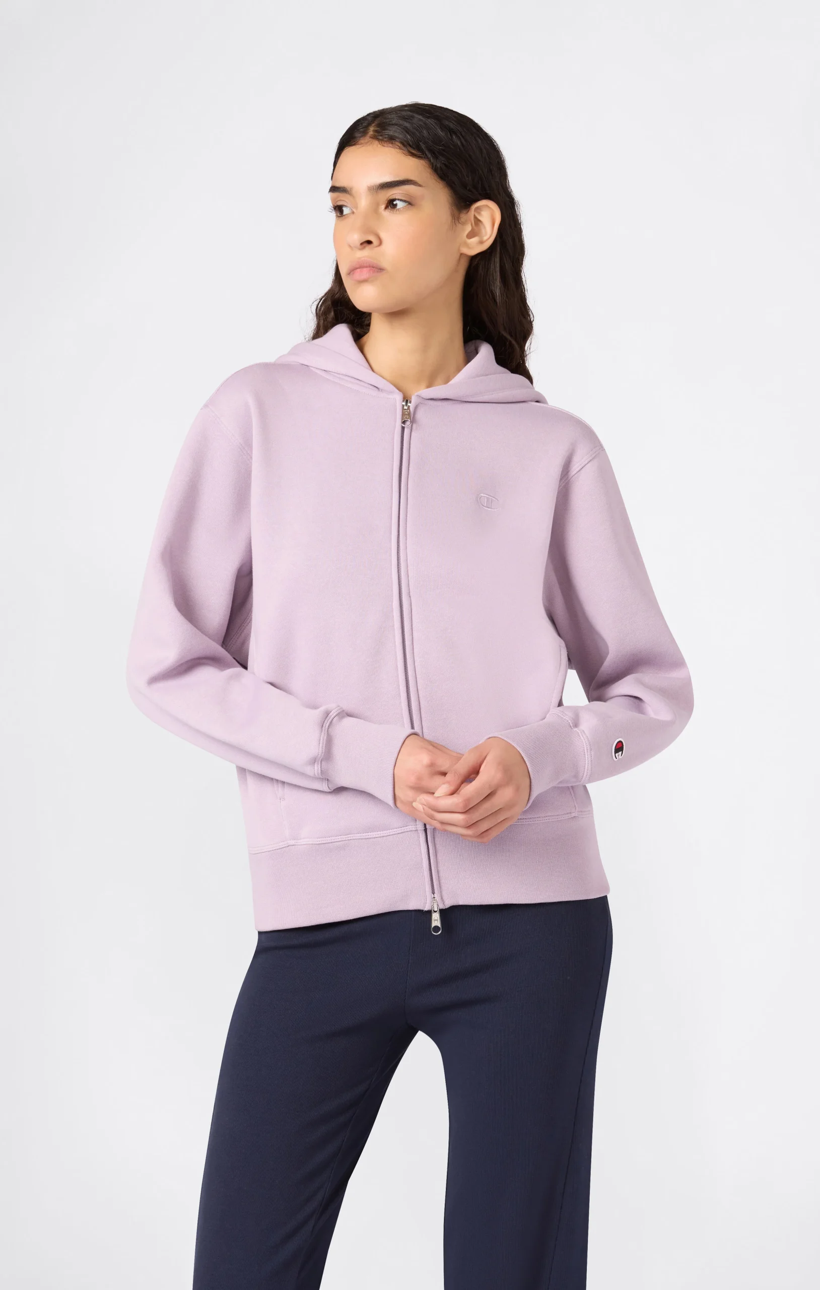 This Champion hoodie belongs to the Icons Tonal line, a selection of must-haves with a minimal and recognizable design. Made of Soft Compact Fleece (280 g/m²) with a brushed inside, it provides warmth, softness and durability. The Standard Fit ensures versatile comfort, while the adjustable hood and full zip increase functionality. The small tone-on-tone embroidered logo on the chest adds a distinctive touch without losing essentiality.@@@Composizione: 70% Cotone, 30% Poliestere |Tessuto: Soft Compact Fall Poly Fleece |Grammatura: 280 g/m² |Interno felpato |Cappuccio regolabile |Chiusura full zip |Tasche a marsupio |Logo ricamato tono su tono sul petto |Logo C ricamato sulla manica |Vestibilità: Standard Fit – versatile e confortevole, segue le linee del corpo senza segnarle
