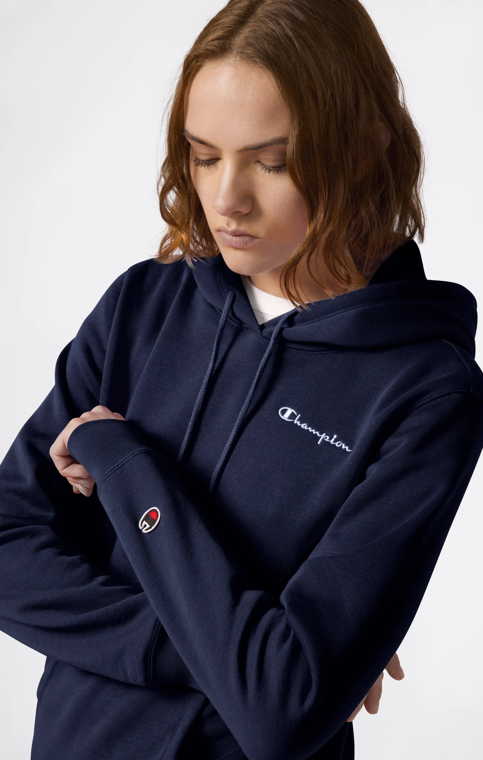 Clean lines and timeless style define this Icons line hoodie, expressing the brand’s most authentic spirit. Made from soft compact fleece with a brushed interior, it is designed to accompany you daily with comfort and a touch of heritage. The tone-on-tone embroidered logo on the chest enhances the garment’s essential and iconic look.@@@Fabric: Compact and soft cotton-blend fleece – 280 g/m² |Composition: 70% Cotton, 30% Polyester |Brushed interior for superior thermal comfort |Drawstring hood |Kangaroo pocket |Embroidered logo |Ribbed cuffs and hem |Tone-on-tone embroidered Champion logo on the chest |Fit: Slim Fit – Close-fitting but not tight, follows the body’s lines