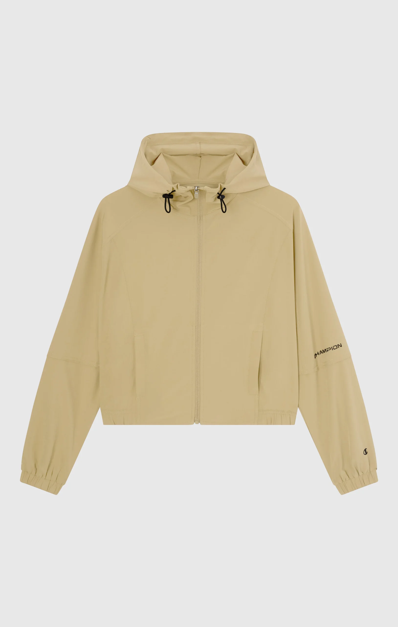 This full zip hooded jacket combines functionality and sporty style in a modern, lightweight design. Made from technical stretch fabric (120 g/m²), it ensures freedom of movement and all-day comfort. The Athletic Fit follows the body’s shape without constricting, while details such as the elasticated hem and cuffs provide stability. Practical and versatile, it’s the perfect layer over tops and leggings for an active, contemporary look.@@@Composition: 88% Polyester, 12% Elastane |Fabric: Light Stretch Woven, 120 g/m² |Adjustable hood with drawcords |Full zip closure |Elasticated cuffs and hem |Side pockets |Fit: Athletic Fit – close but not tight, follows the body’s curves while ensuring comfort and freedom of movement