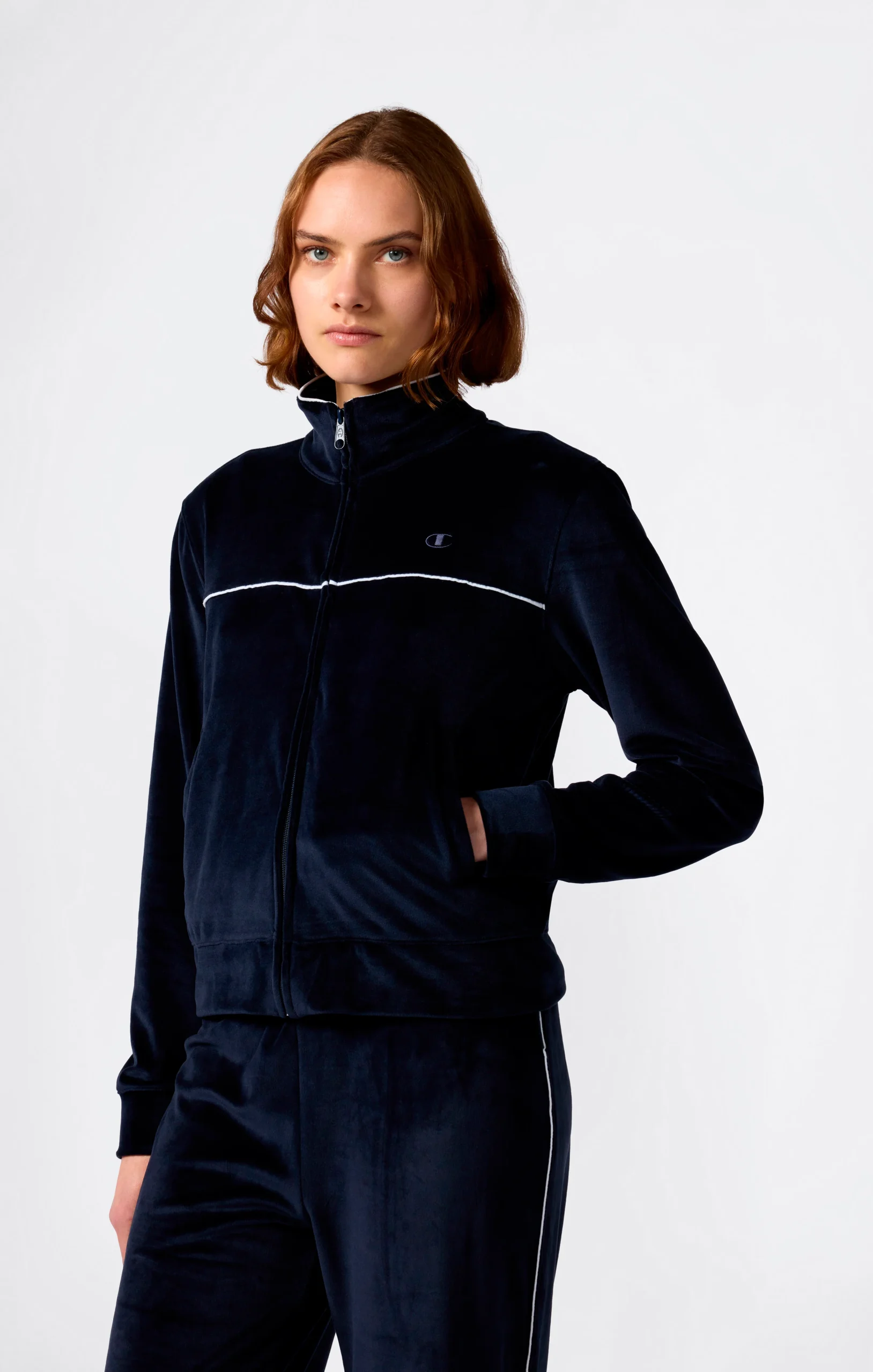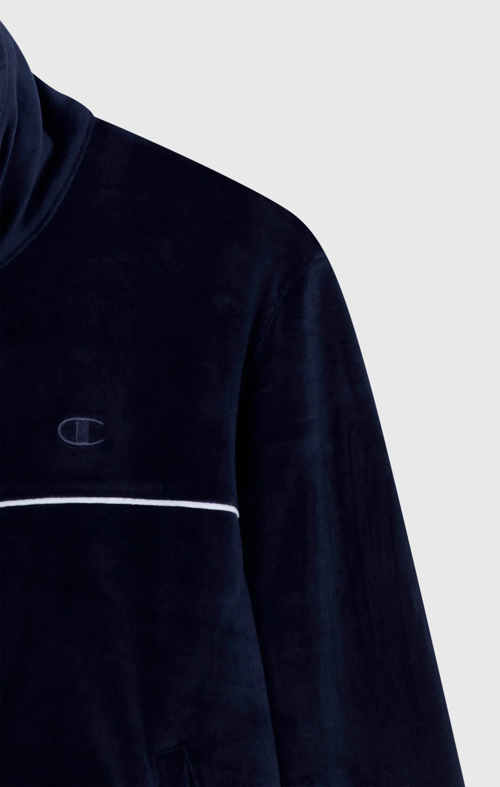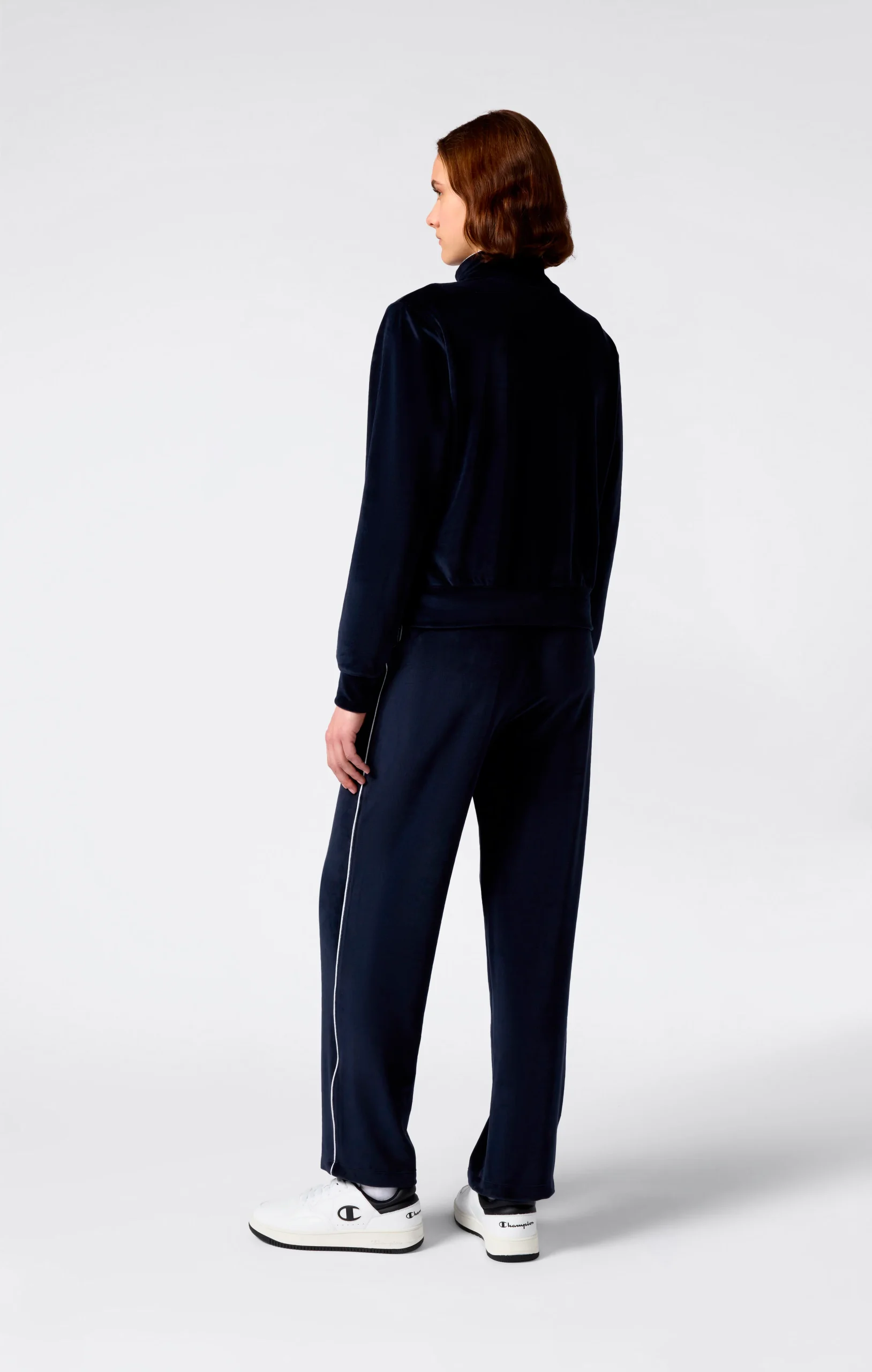 A full-zip set that blends sporty elegance and ultimate softness. Made from lightweight, silky velour, it flatters the figure with a slim fit. The velvet-effect fabric adds a touch of retro-contemporary style, perfect for relaxing or a comfy look.@@@Fabric: Soft Micro Velour, weight: 250 g/m² |Composition: 94% Polyester, 6% Elastane |Soft and smooth velvet-effect fabric |Full-zip sweatshirt with high collar |Slim pants with elastic waistband |Embroidered logo |Fit: Slim Fit: Close-fitting but not tight. The garment follows the silhouette, contouring the body’s shape.