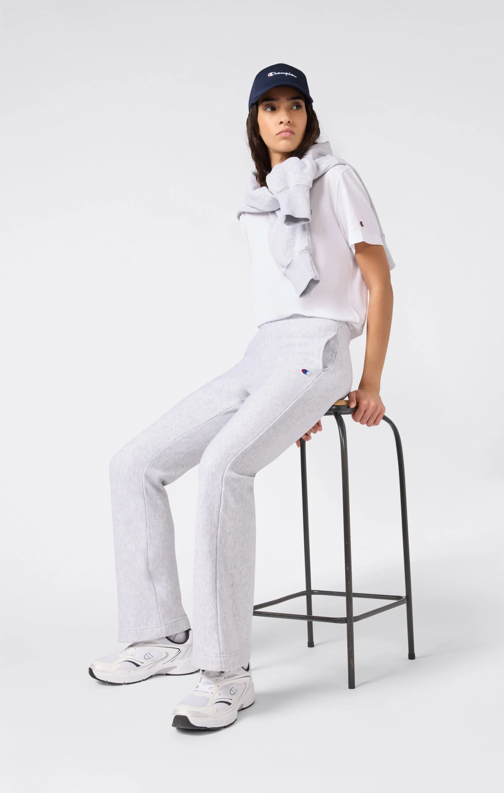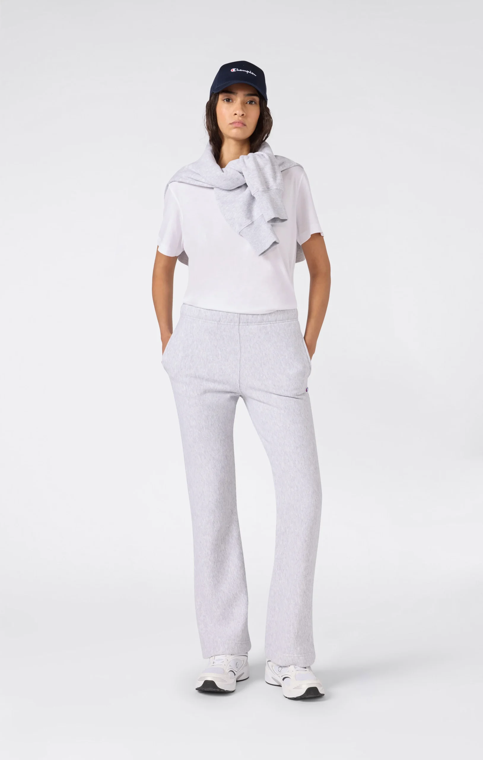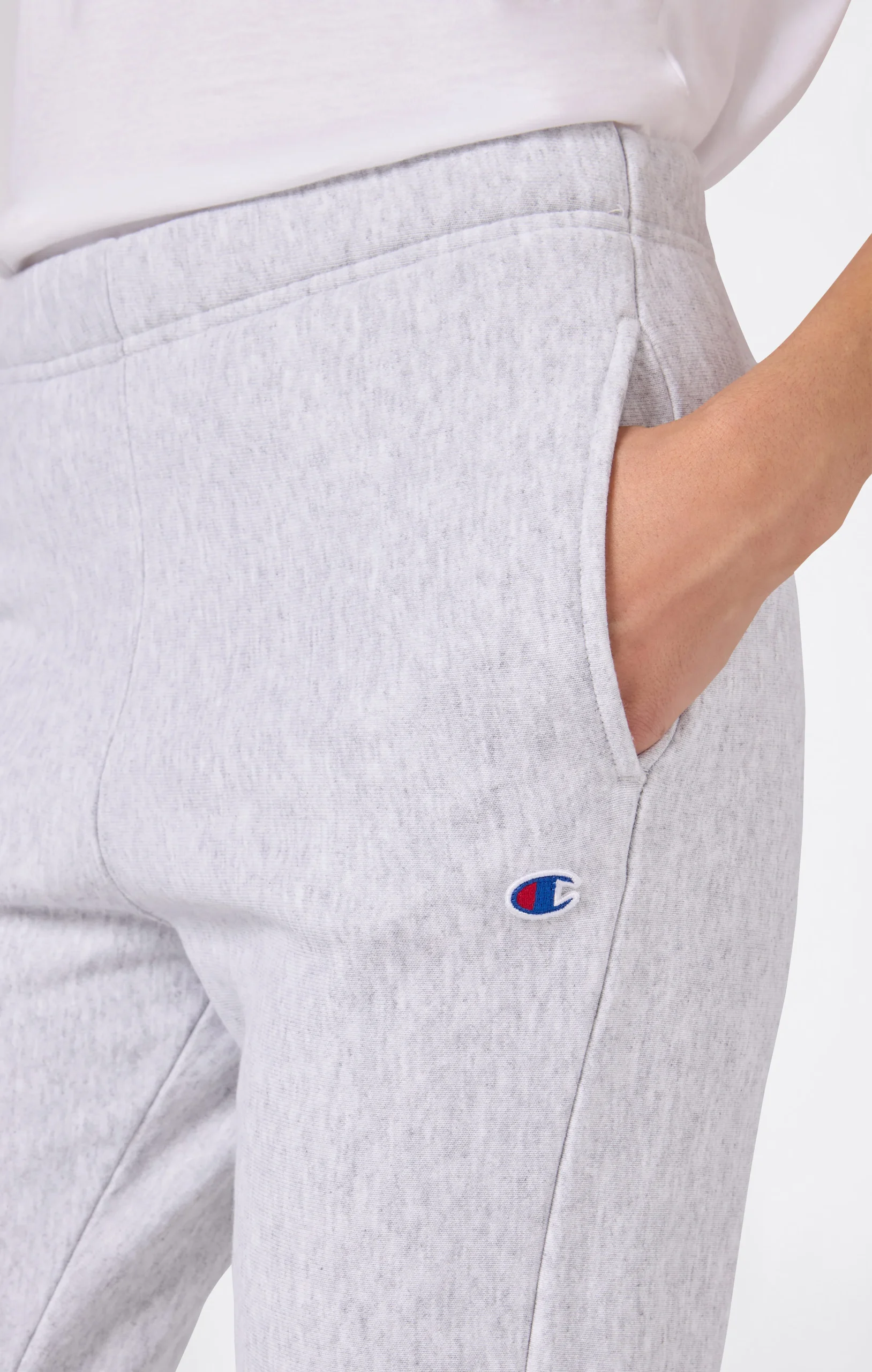 These women’s sweatpants in Reverse Weave fabric blend sporty style with a feminine edge. Built with Champion’s patented construction from the 1930s, they retain their shape over time and offer lasting comfort and durability. The brushed interior adds warmth and softness, ideal for cooler days.@@@Fabric: Brushed fleece 420 g/m² |Composition: 82% Cotton, 18% Polyester |Brushed interior |Reverse Weave: patented construction that prevents vertical shrinkage |Elastic waistband |Back pocket |Embroidered C logo |Fit: Slim Fit: Close-to-body fit that follows the body’s natural shape without being tight.