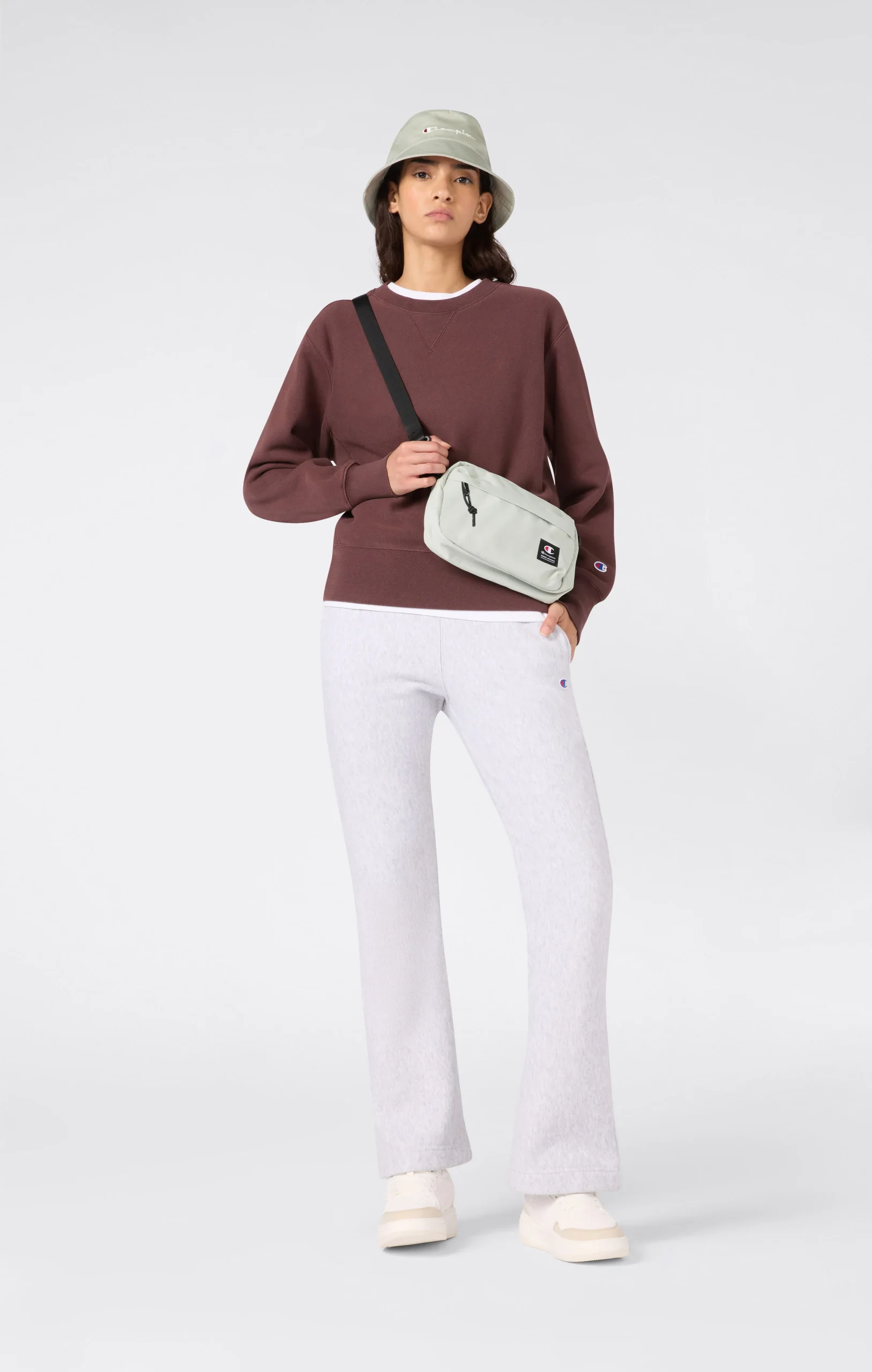 A classic piece of sportswear reimagined for the women’s wardrobe. This crewneck is made from exclusive Reverse Weave fabric, a technique patented by Champion in the 1930s to ensure softness, durability and a shape that stays true over time. The essential design with V-insert at the collar and small embroidered C logo on the sleeve evokes authentic Champion heritage.@@@Fabric: Reverse Fleece 420 g/m² |Composition: 82% Cotton, 18% Polyester |Brushed interior |Crewneck with V-insert |Ribbed cuffs and hem |Embroidered C logo on sleeve |Fit: Standard Fit – Versatile and comfortable fit with standard lengths and widths. Follows the body without clinging. Regular shoulder cut.