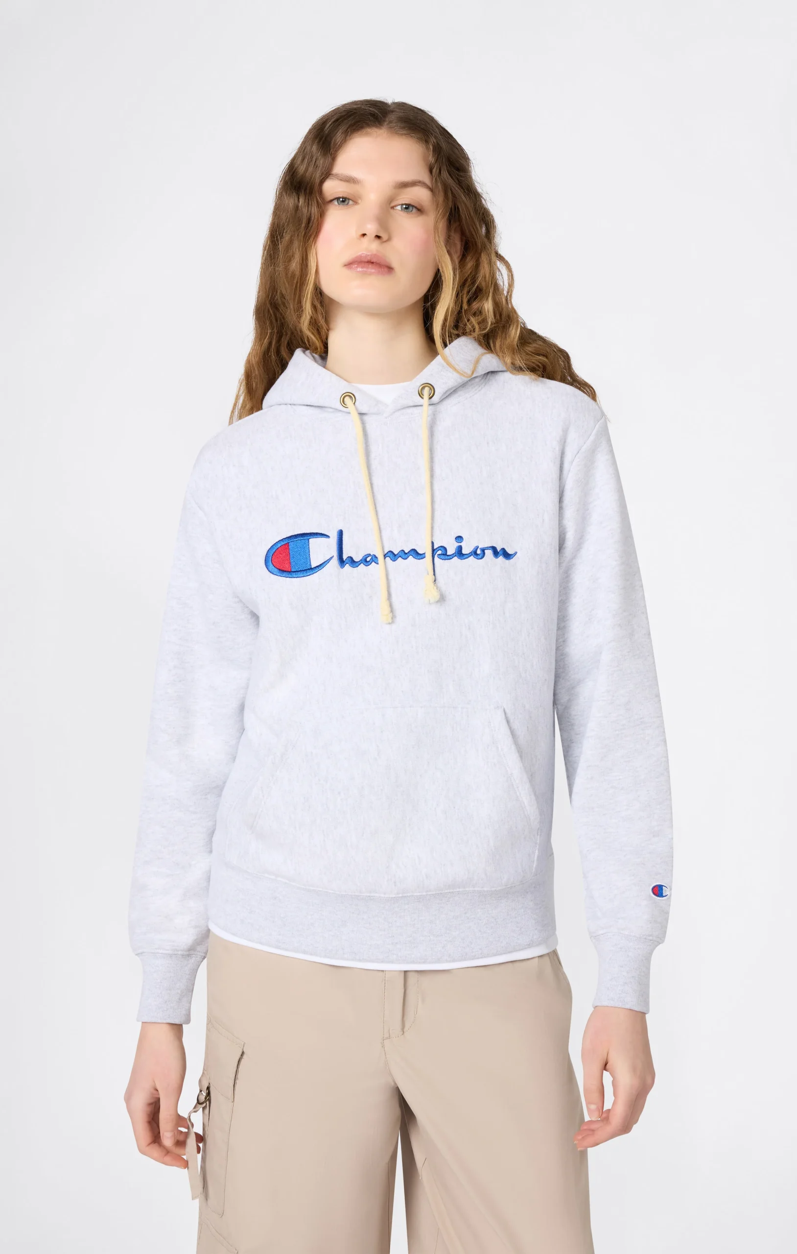 Women’s lightweight hooded sweatshirt made from Soft Reverse Terry, an iconic Champion fabric designed to deliver comfort and durability over time. The Reverse Weave construction, with fabric cut crosswise, helps reduce shrinkage and maintain the garment’s shape wash after wash. The unbrushed interior makes this hoodie ideal for mid-season wear and everyday use, while the Standard Fit ensures a comfortable and versatile silhouette. The embroidered Champion logo on the chest adds a distinctive heritage touch.@@@Standard Fit, regular and comfortable |Lightweight Soft Reverse Terry fabric |Unbrushed interior |Reverse Weave construction for improved shape retention |Composition: 82% Cotton, 18% Polyester |Weight: 400 g/m² |Fixed hood with adjustable drawstring |Front kangaroo pocket |Embroidered Champion logo on the chest