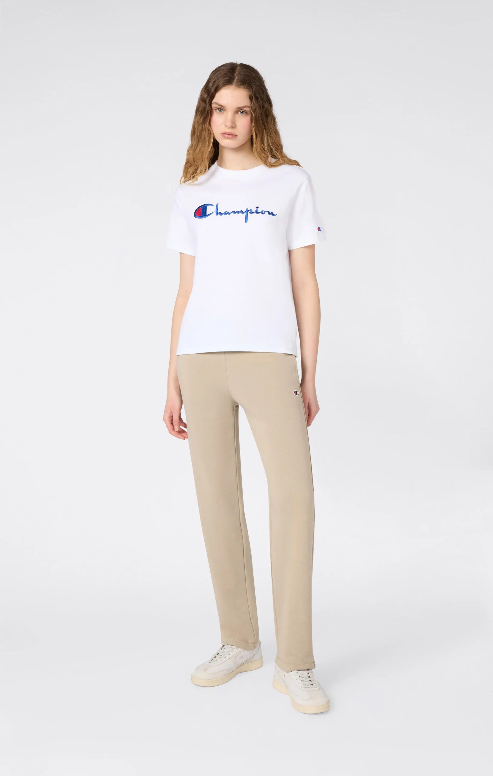 Champion women’s Icons jogger pants combine sportswear comfort with clean, modern lines. Made from soft compact fleece, they offer a pleasant hand feel and a lightweight structure ideal for everyday wear. The straight hem design gives a cleaner, more versatile look compared to traditional joggers, while the Slim Fit enhances the silhouette with a relaxed yet modern style. A versatile piece for leisure time and urban outfits.@@@Fit: Slim Fit, close-fitting, streamlined silhouette |Fabric: Soft compact fleece |Composition: 69% Cotton, 31% Polyester |Weight: 280 g/m² |Hem: Straight hem |Pockets: Front pockets