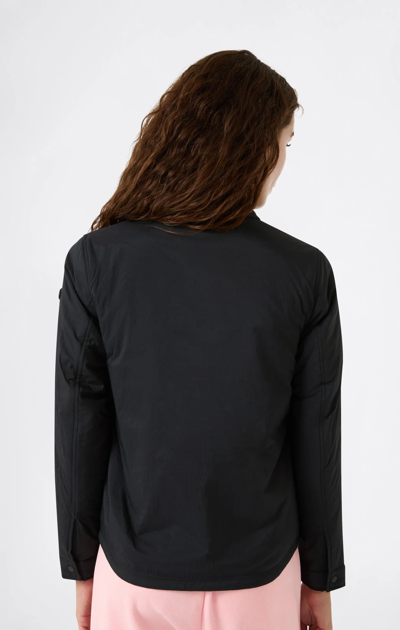 Clean lines and outdoor spirit come together in this lightweight jacket made of nylon with a ciré finish and water-repellent treatment. Lightly padded for extra warmth in mid-season, it features a straight silhouette with patch pockets and snap-button front closure, perfect for a casual and contemporary style.@@@Fabric: Ciré Woven Nylon, weight: 43 g/m² |Composition: 100% Polyamide |Padding: Polyester |Water-repellent treatment |Shirt-style collar |Front snap button closure |Front patch pockets |Button cuffs |Standard Fit: Versatile and comfortable fit with standard widths and lengths. Close to the body, it has simple lines that do not cling to the shape. Regular shoulder cut.