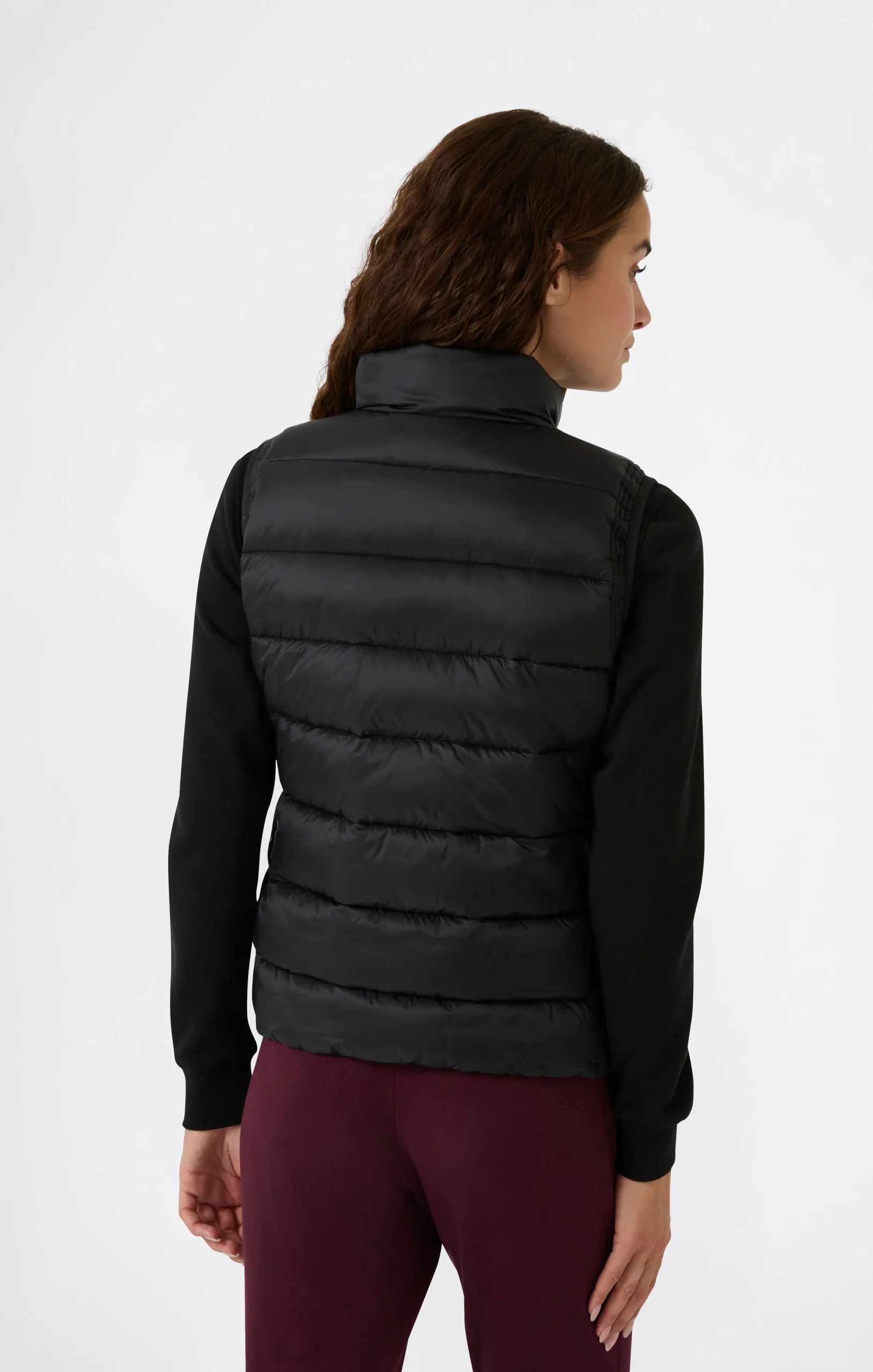 Perfect for mid-season or as an extra layer on cold days, this padded vest is made of lightweight nylon with a shiny finish and water-repellent treatment. The quilted construction and fitted silhouette enhance its technical look without compromising on style. Practical and compact, it features a front zip and side pockets with zip closure.@@@Fabric: New Light Nylon with PD, W/R, Ciré, |Composition: 100% Polyamide |Padding: Polyester |Shiny effect and water-repellent treatment |Horizontal quilting |Front zip closure |Side zip pockets |Sleeveless |Slim Fit: Close-fitting but not tight. The garment adapts to the silhouette, following the body’s curves.