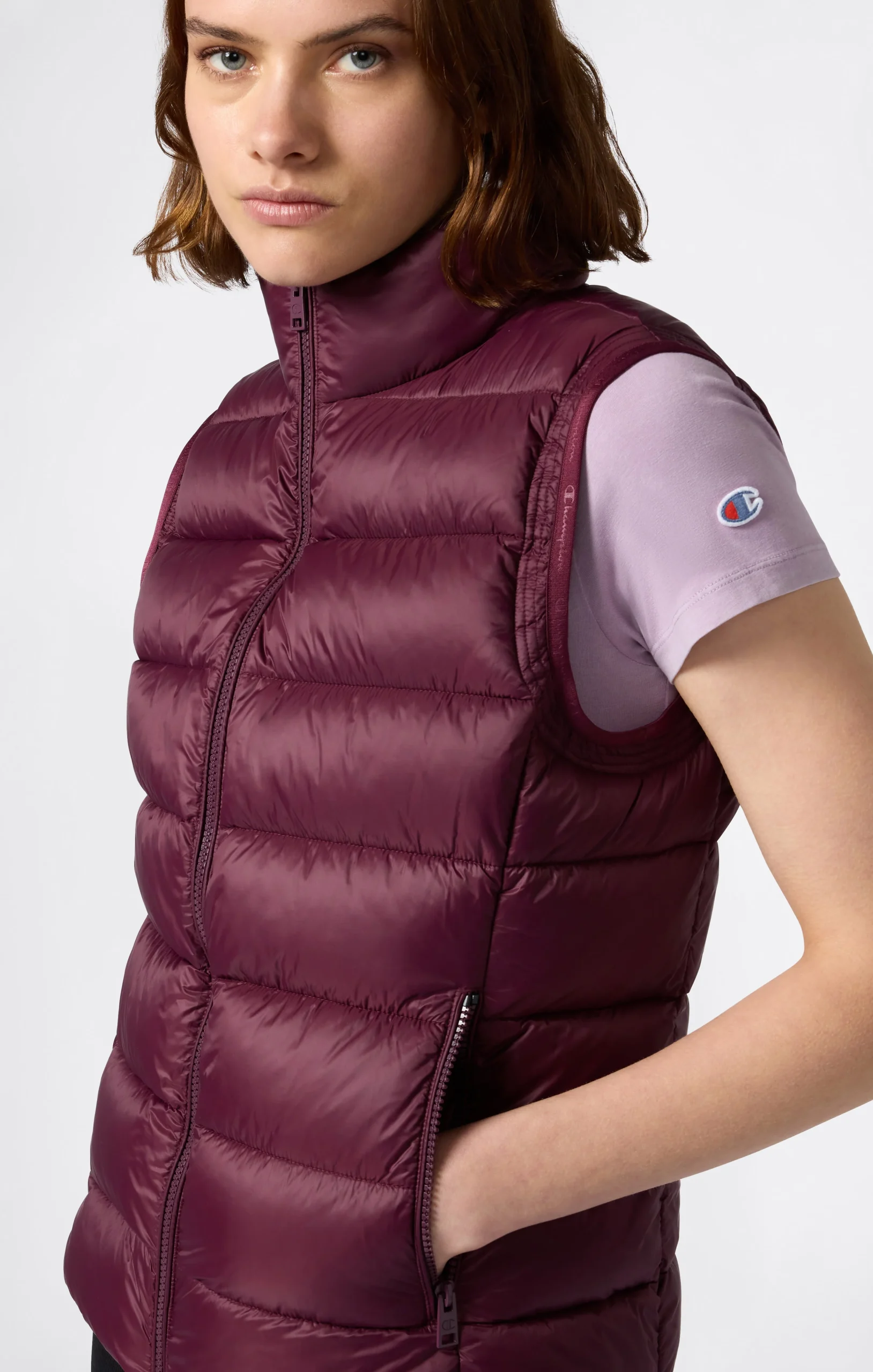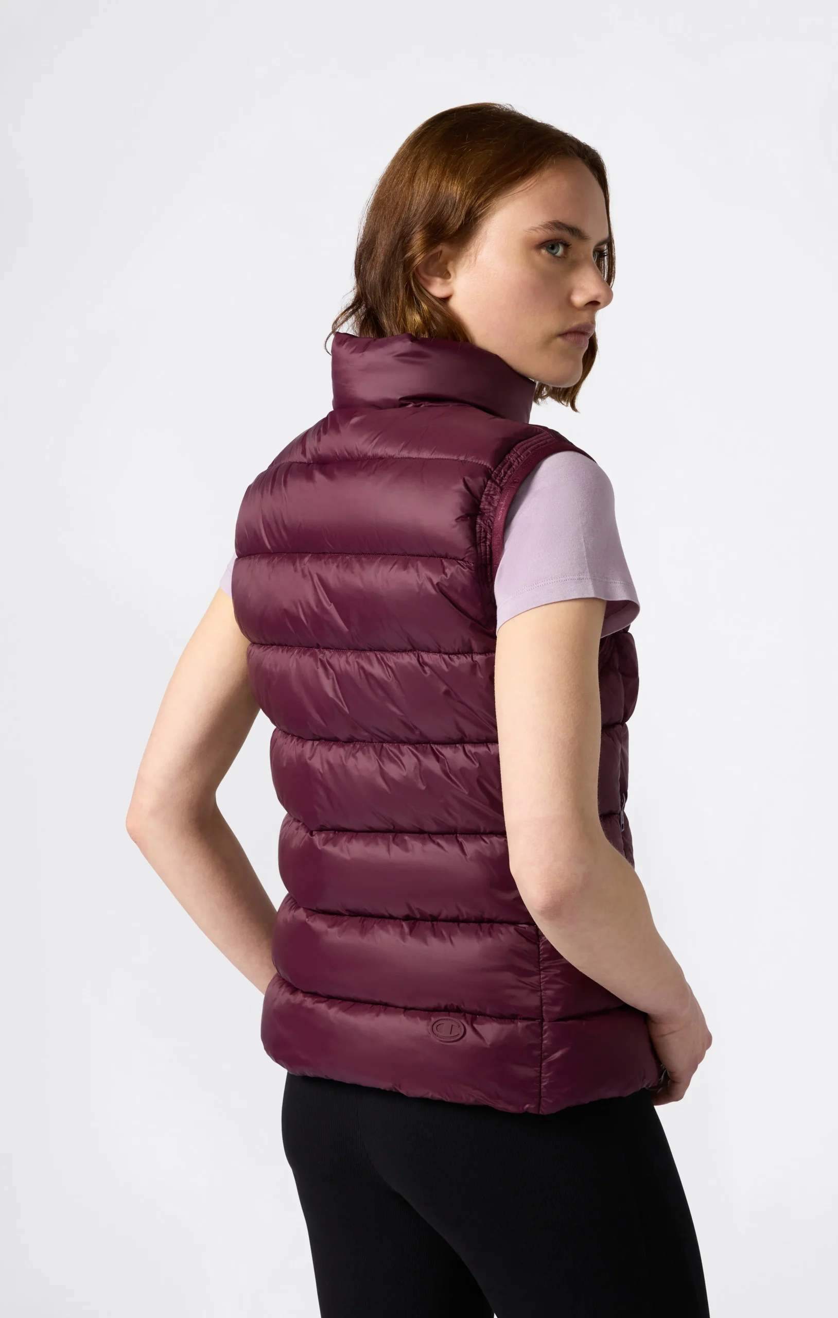 Perfect for mid-season or as an extra layer on cold days, this padded vest is made of lightweight nylon with a shiny finish and water-repellent treatment. The quilted construction and fitted silhouette enhance its technical look without compromising on style. Practical and compact, it features a front zip and side pockets with zip closure.@@@Fabric: New Light Nylon with PD, W/R, Ciré, |Composition: 100% Polyamide |Padding: Polyester |Shiny effect and water-repellent treatment |Horizontal quilting |Front zip closure |Side zip pockets |Sleeveless |Slim Fit: Close-fitting but not tight. The garment adapts to the silhouette, following the body’s curves.