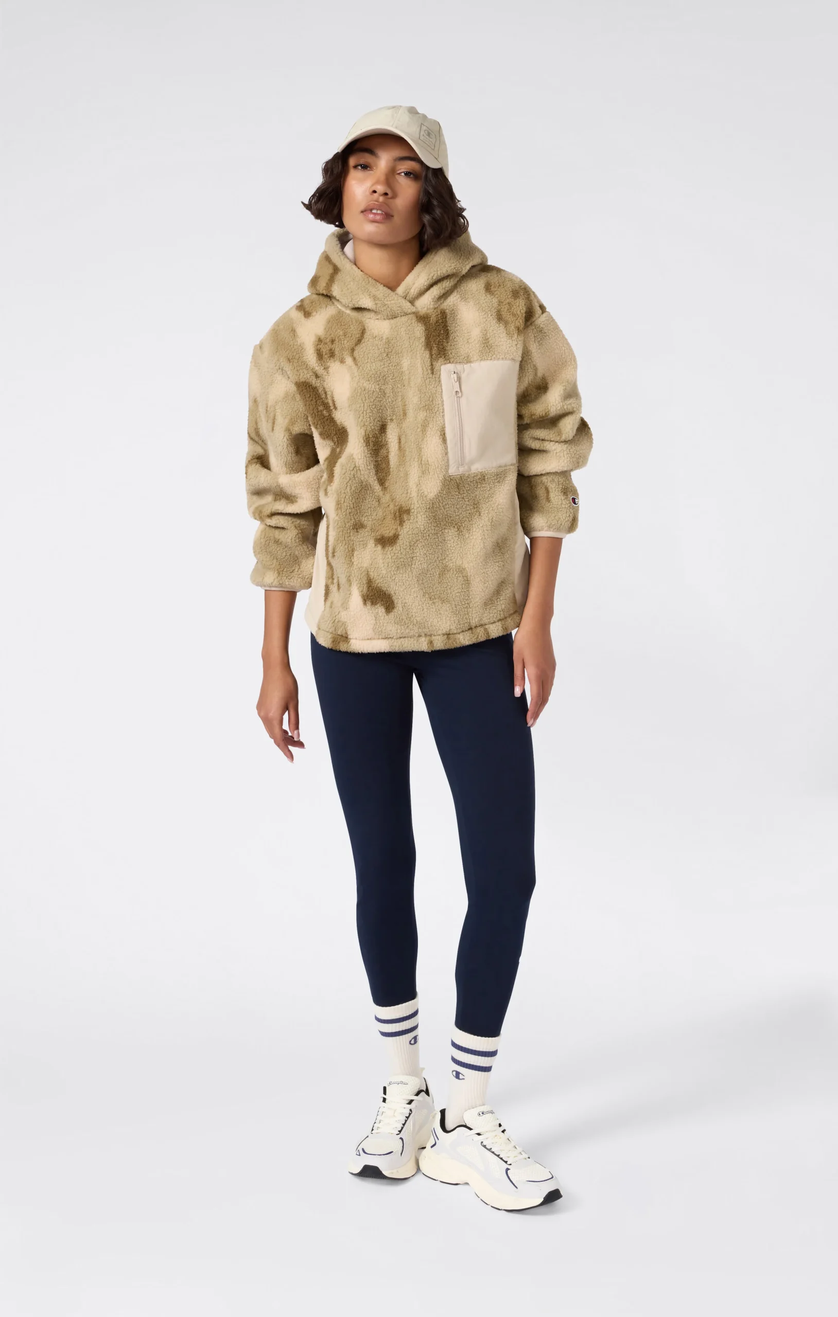 Perfect for facing winter in style, this hoodie is made from ultra-soft polar teddy fleece with a cozy, sherpa-like texture. The outer fabric delivers a warm look, while smooth tone-on-tone inserts add a technical touch. The silhouette is comfortable, featuring a slightly dropped shoulder and a regular fit. Ideal to wear as a mid-layer on colder days.@@@Main fabric: Polar Fleece, weight: 450 g/m² |Composition: 100% Polyester |Second fabric: Crinkle-effect fabric with peached finish, weight: 114 g/m² |Composition: 100% Polyester |Fit: Standard Fit: versatile and comfortable with standard widths and lengths. Close to the body, it has simple lines that do not cling to the shape. Regular shoulder cut.