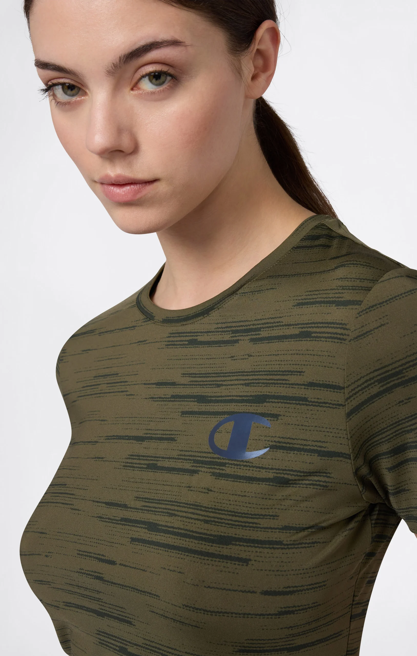 Champion women’s sports T-shirt is designed to deliver performance and comfort during workouts and active everyday wear. Made from technical stretch jersey, it provides lightweight breathability and freedom of movement. The quick-dry technology with anti-microbial treatment promotes fast drying and helps maintain a fresh feel even during intense training sessions. The crewneck design and Fitted silhouette create a clean, athletic look.@@@Fit: Fitted, close-fitting, athletic silhouette |Fabric: Quick-dry stretch technical jersey with anti-microbial treatment |Composition: 84% Polyester, 16% Elastane |Weight: 200 g/m² |Neckline: Crewneck |Use: Sports and training