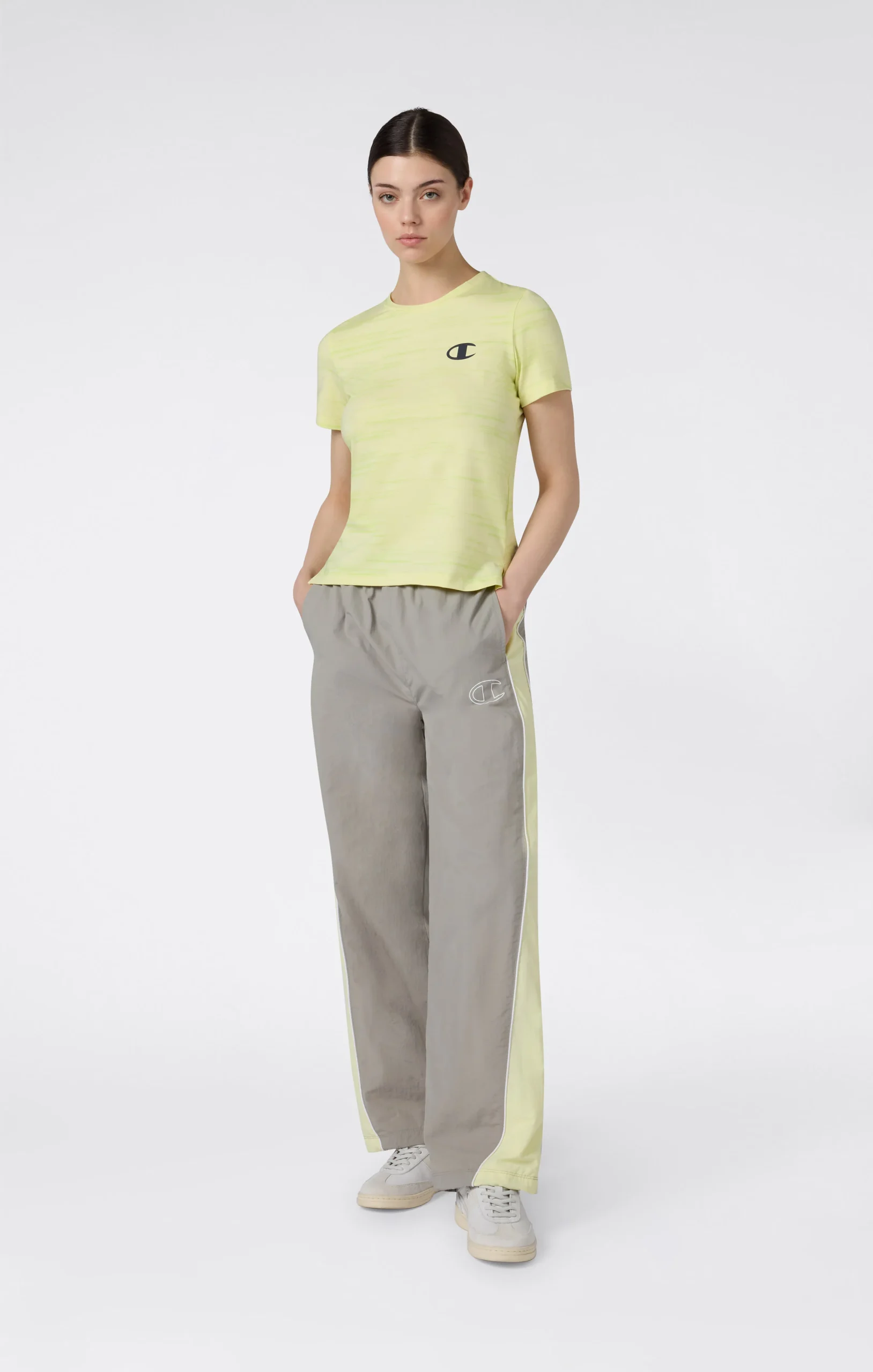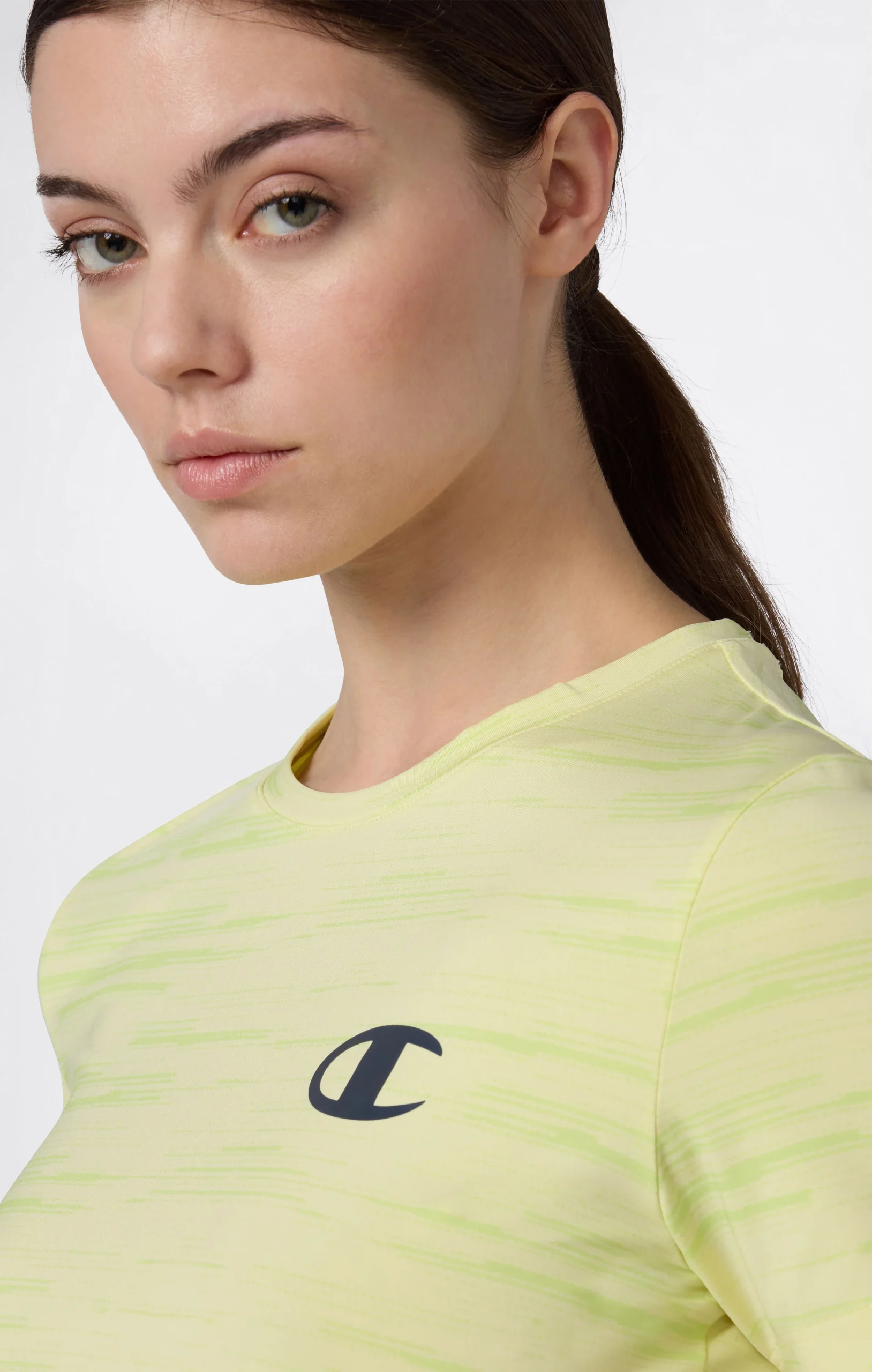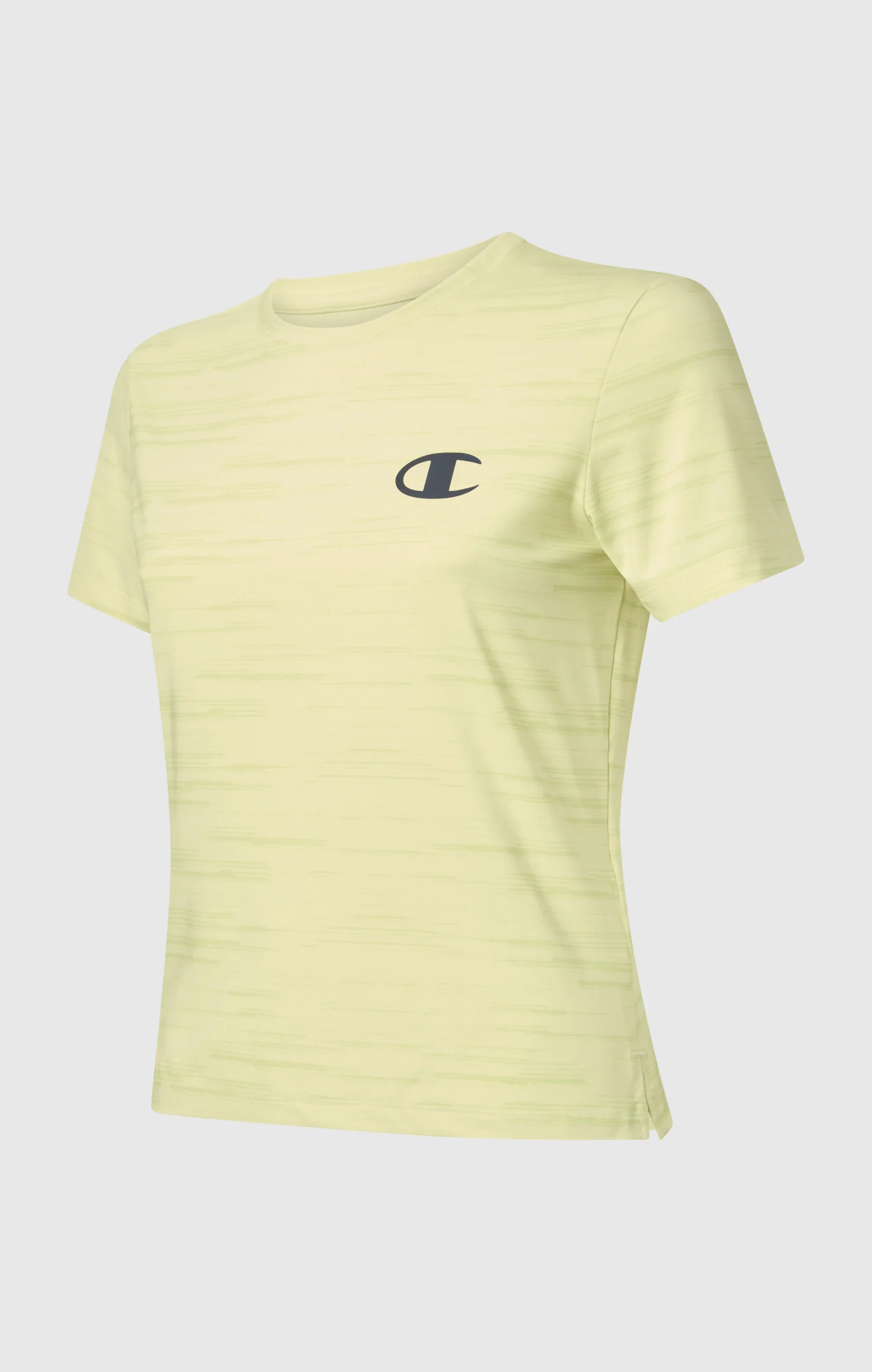 Champion women’s sports T-shirt is designed to deliver performance and comfort during workouts and active everyday wear. Made from technical stretch jersey, it provides lightweight breathability and freedom of movement. The quick-dry technology with anti-microbial treatment promotes fast drying and helps maintain a fresh feel even during intense training sessions. The crewneck design and Fitted silhouette create a clean, athletic look.@@@Fit: Fitted, close-fitting, athletic silhouette |Fabric: Quick-dry stretch technical jersey with anti-microbial treatment |Composition: 84% Polyester, 16% Elastane |Weight: 200 g/m² |Neckline: Crewneck |Use: Sports and training