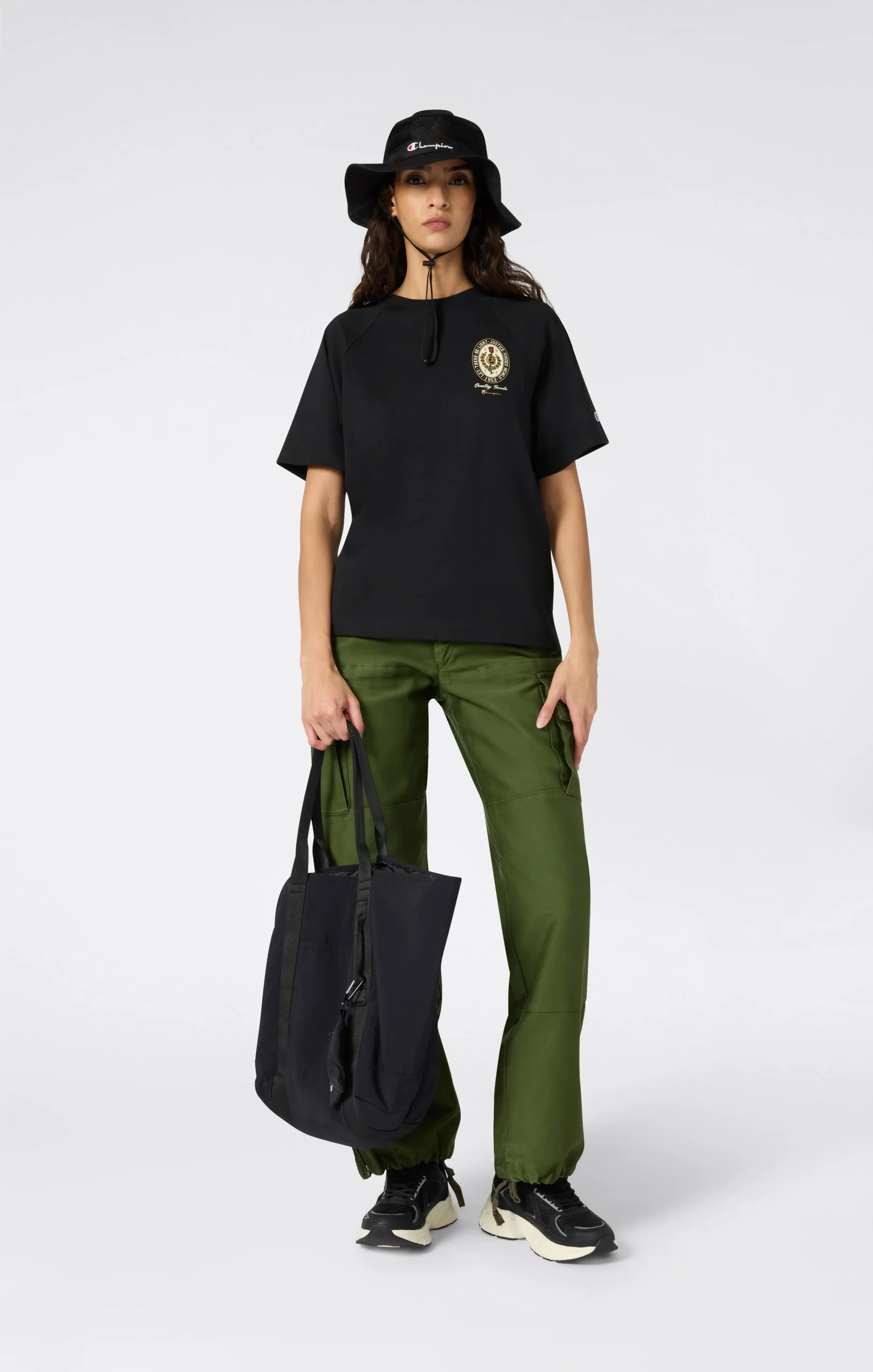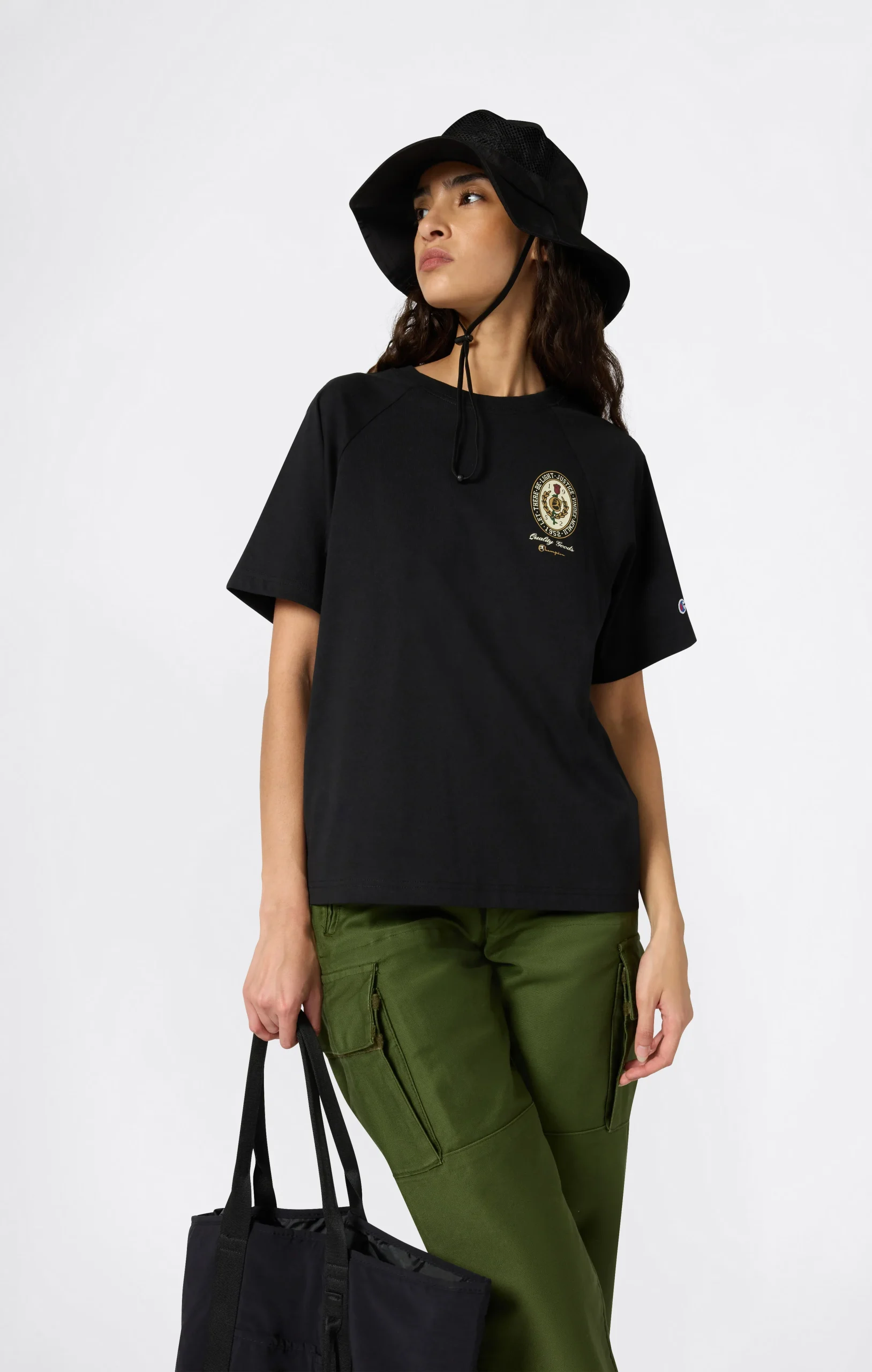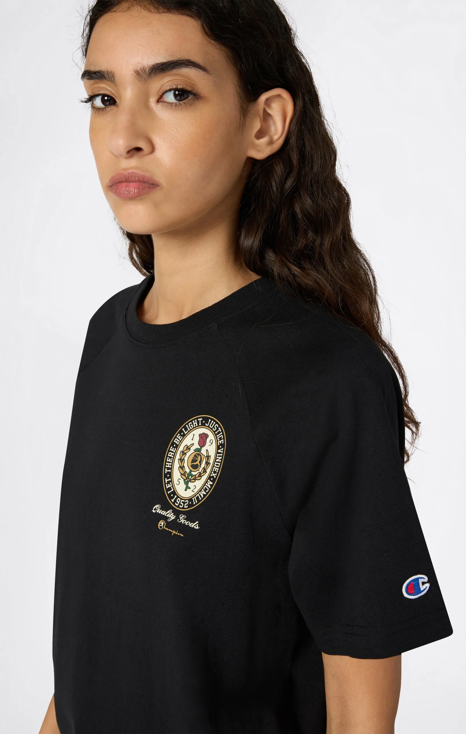 This women’s t-shirt in heavyweight cotton jersey features placed graphics on the front and back for a bold, distinctive touch. With its straight cut and versatile fit, it’s ideal for everyday wear—on its own or layered. Comfort and style meet in a timeless yet characterful piece.@@@Fabric: Heavy jersey 220 g/m² |Composition: 100% Cotton |Graphic print on front and back |Ribbed collar |Embroidered C logo on sleeve |Fit: Standard Fit: Versatile and comfortable fit with standard lengths and widths. Designed to skim the body without clinging. Regular shoulder cut.