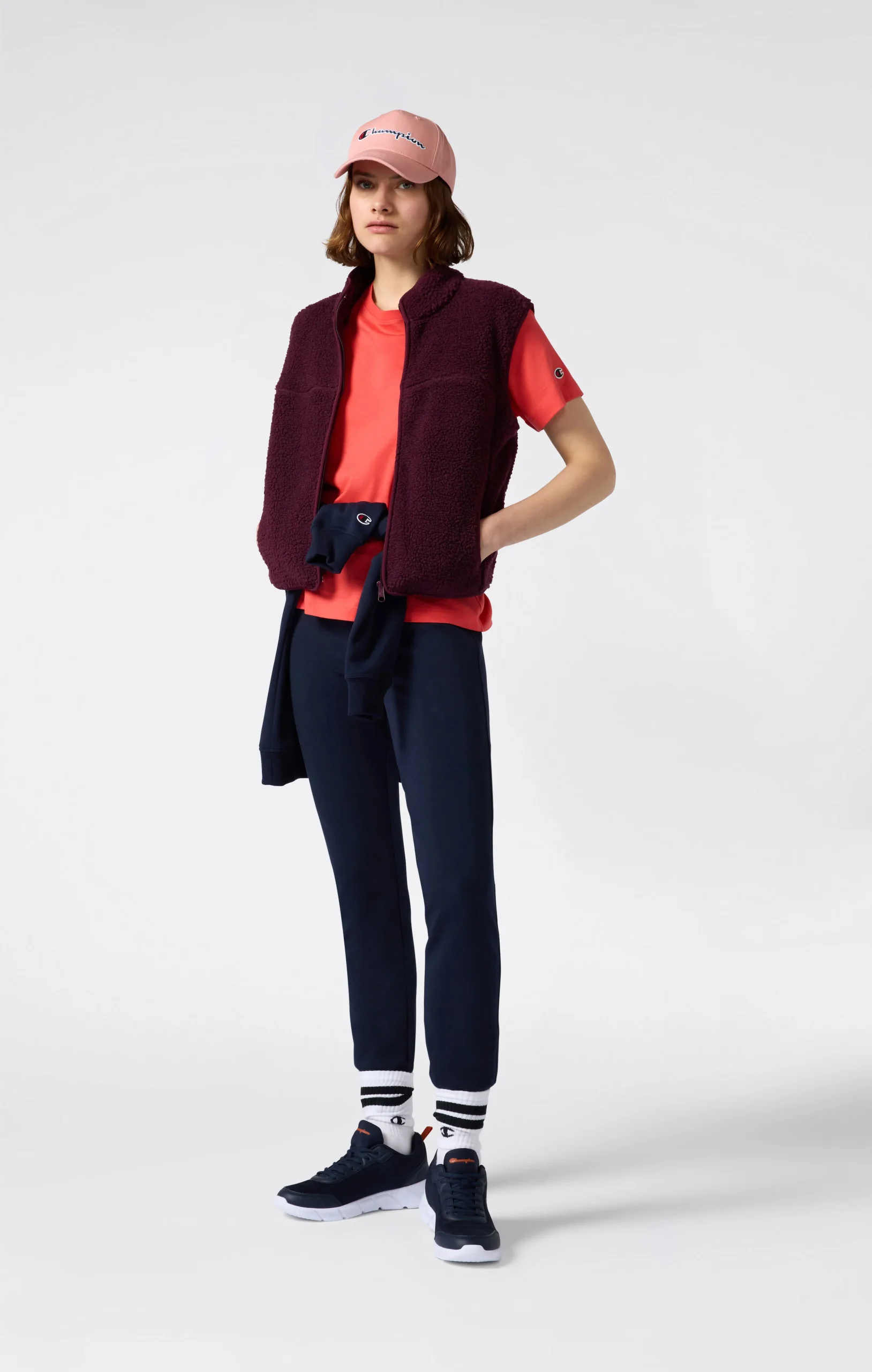 These pants from the Icons line are made of soft stretch fleece and designed to accompany you in style throughout the day. The slim fit follows the body’s lines without restrictions, while the elastic waistband with adjustable drawstring and ribbed cuffs ensure comfort and hold. The embroidered C logo adds an iconic touch to this feminine reinterpretation of an essential piece.@@@Fabric: Stretch fleece with soft inner side – 260 g/m² |Composition: 80% Cotton, 15% Polyester, 5% Elastane |Brushed interior for superior thermal comfort |Elasticated waistband with drawstring |Ribbed leg cuffs |Embroidered C logo on the leg |Fit: Slim Fit – Close-fitting but not tight. The garment follows the body’s curves.