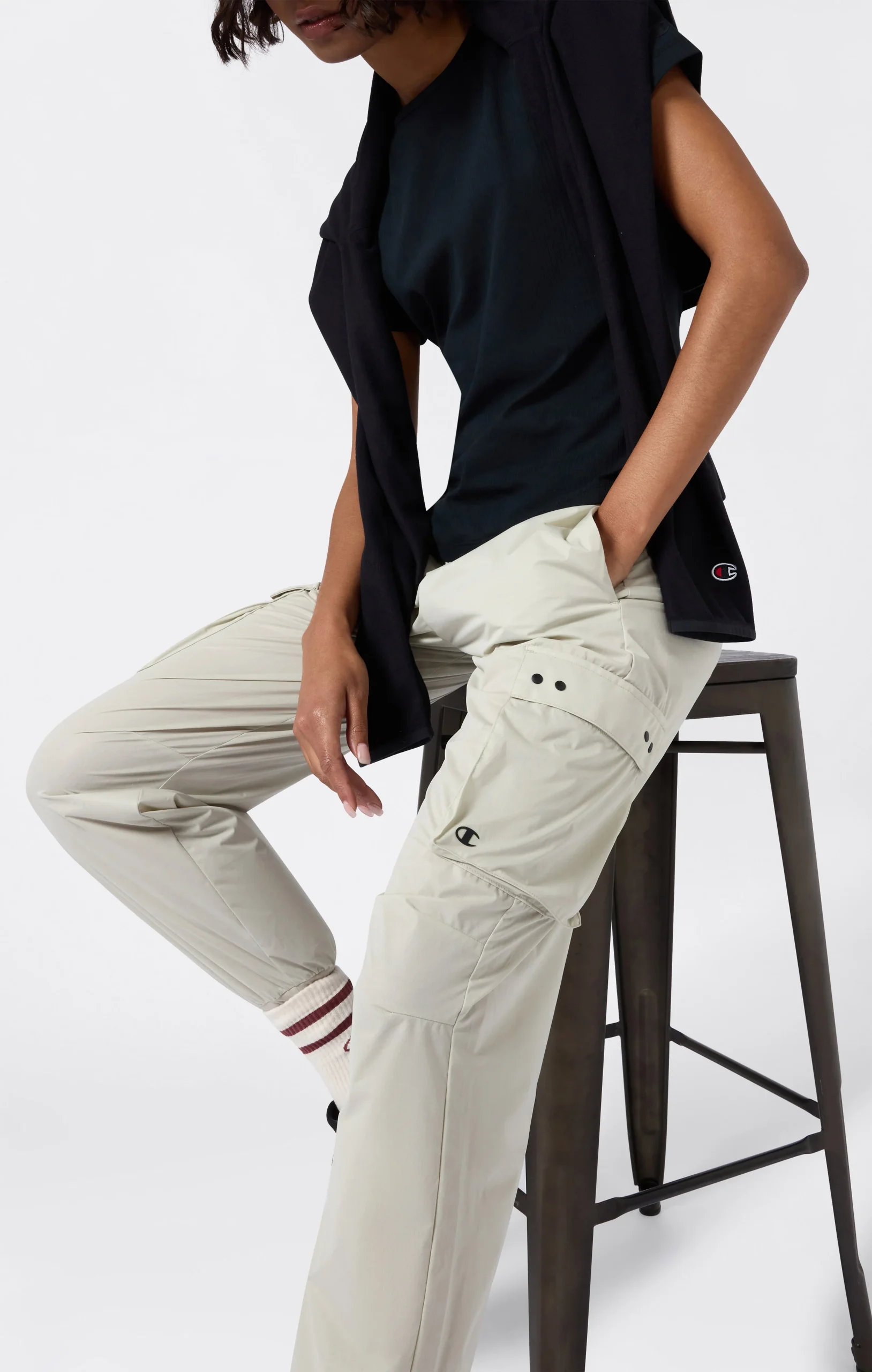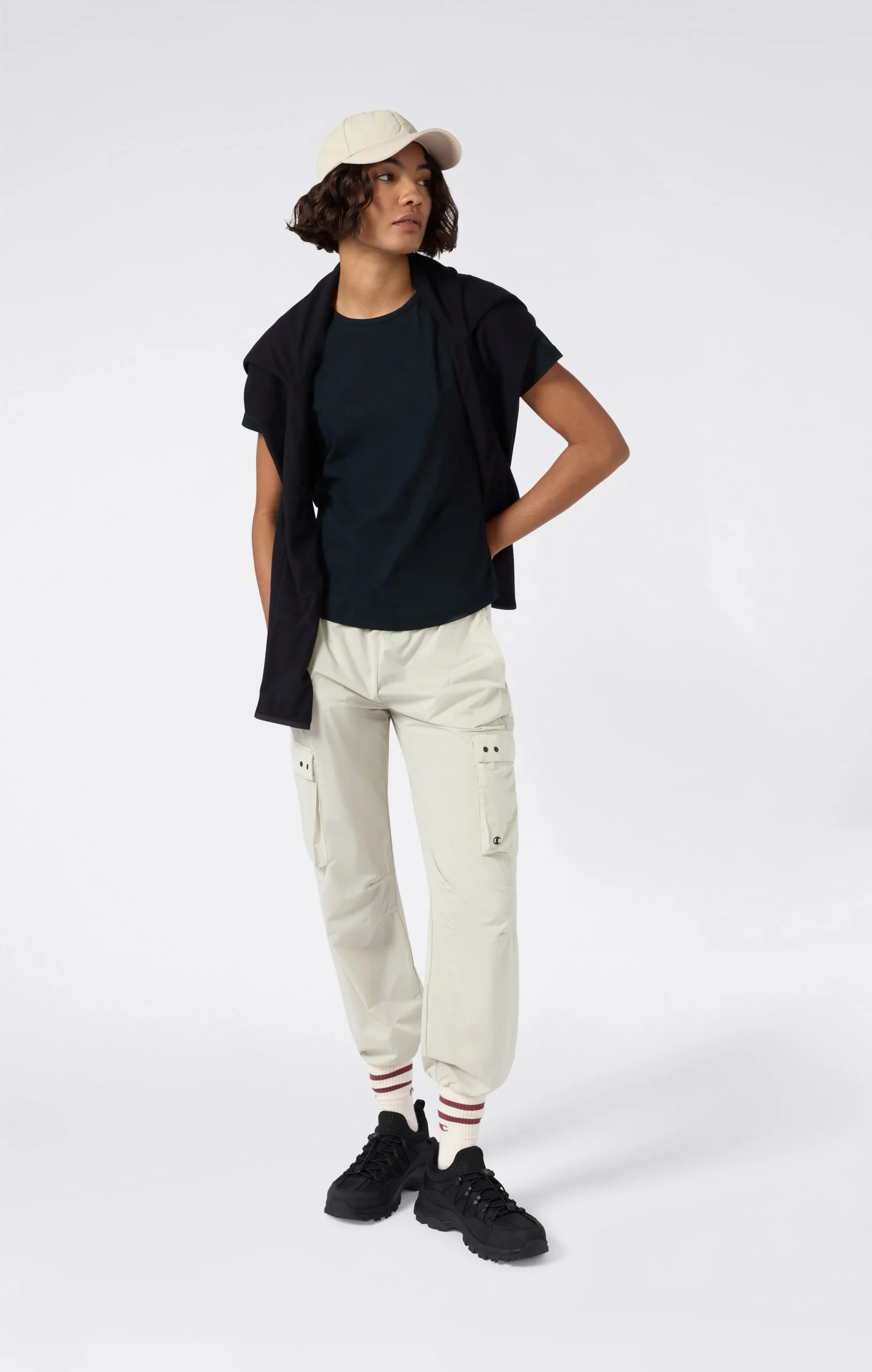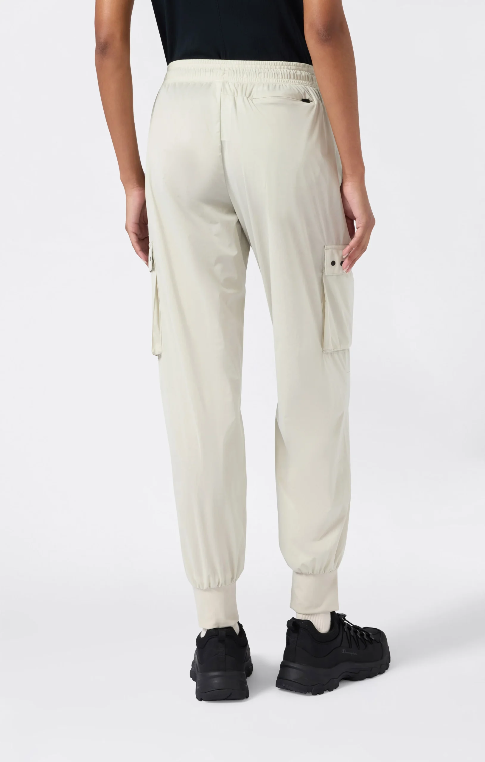 These cargo pants combine lightness and practicality for a functional and contemporary style. Made from ultra-light fabric, they offer freedom of movement and comfort throughout the day. The large side pockets with flaps add a utility touch and make the piece perfect for a dynamic urban look.@@@Fabric: Ultra-light smooth-weave polyester – 75 g/m² |Composition: 100% Polyester |Cargo pockets with flap and double button |Elasticated leg cuffs |Elasticated waistband with drawcord |Fit: Standard Fit – soft and comfortable