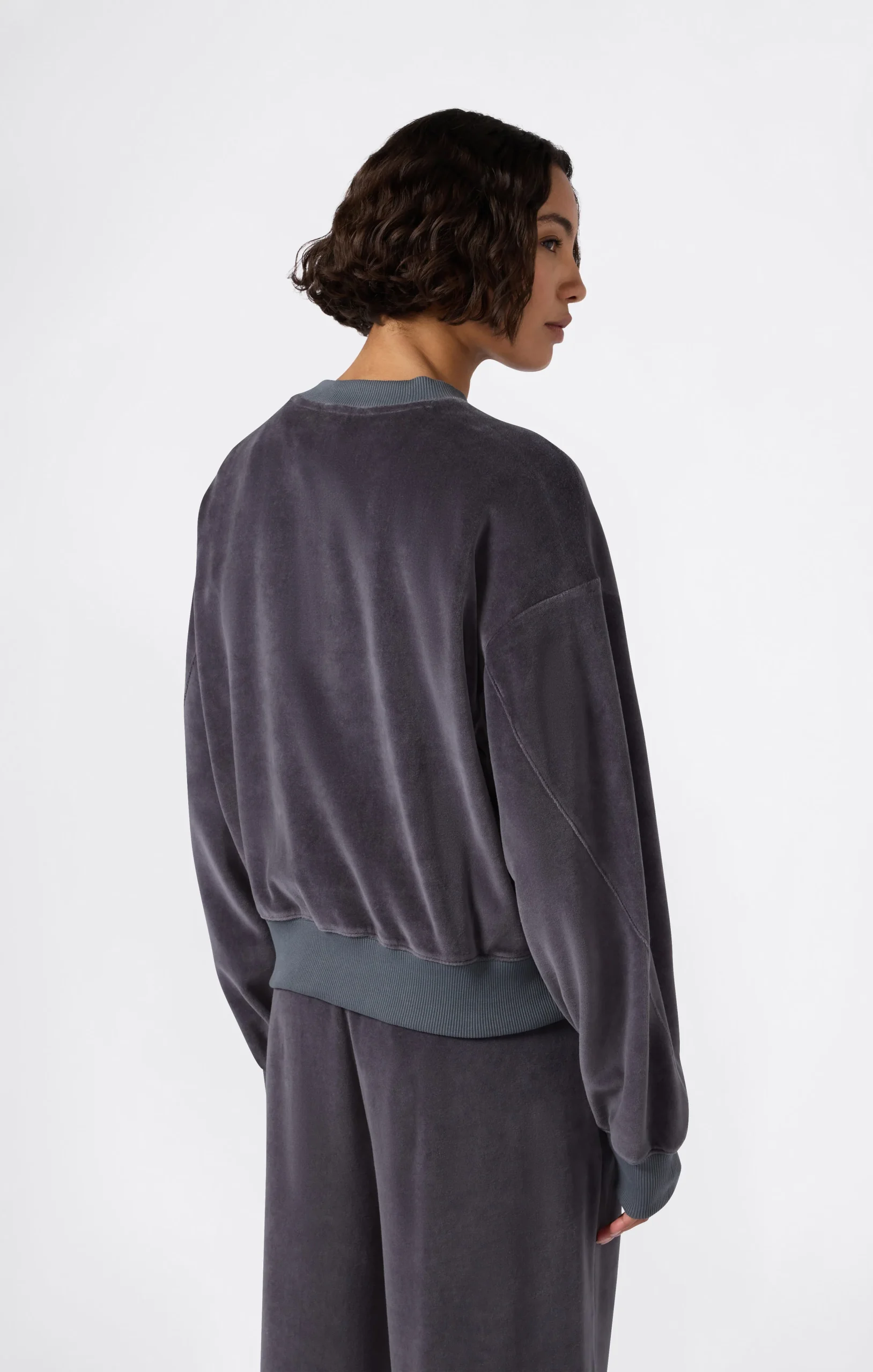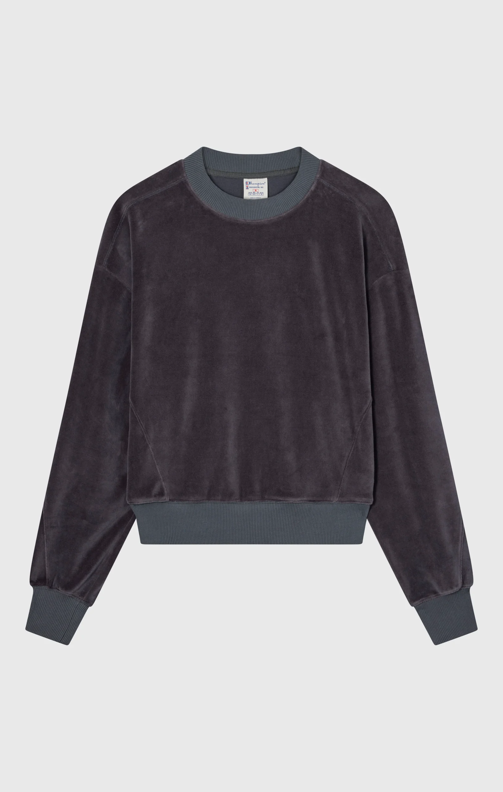 Made from soft velvet, this crewneck sweatshirt blends comfort and style in a design that is both essential and refined. The loose, relaxed fit enhances the silhouette without constriction, while ribbed knit details on the collar, cuffs, and hem add a contemporary touch. The smooth, velvety fabric feels pleasant to the touch, making this piece perfect for elegant relaxation—whether at home or out and about.@@@Fabric: Heavy stretch velvet, 360 g/m² |Composition: 75% Cotton, 23% Polyester, 2% Elastane |Ribbed knit cuffs and hem |Tone-on-tone silicone «C» logo on the sleeve |Loose Fit: Wide fit with dropped shoulders, wide sleeves, regular length.