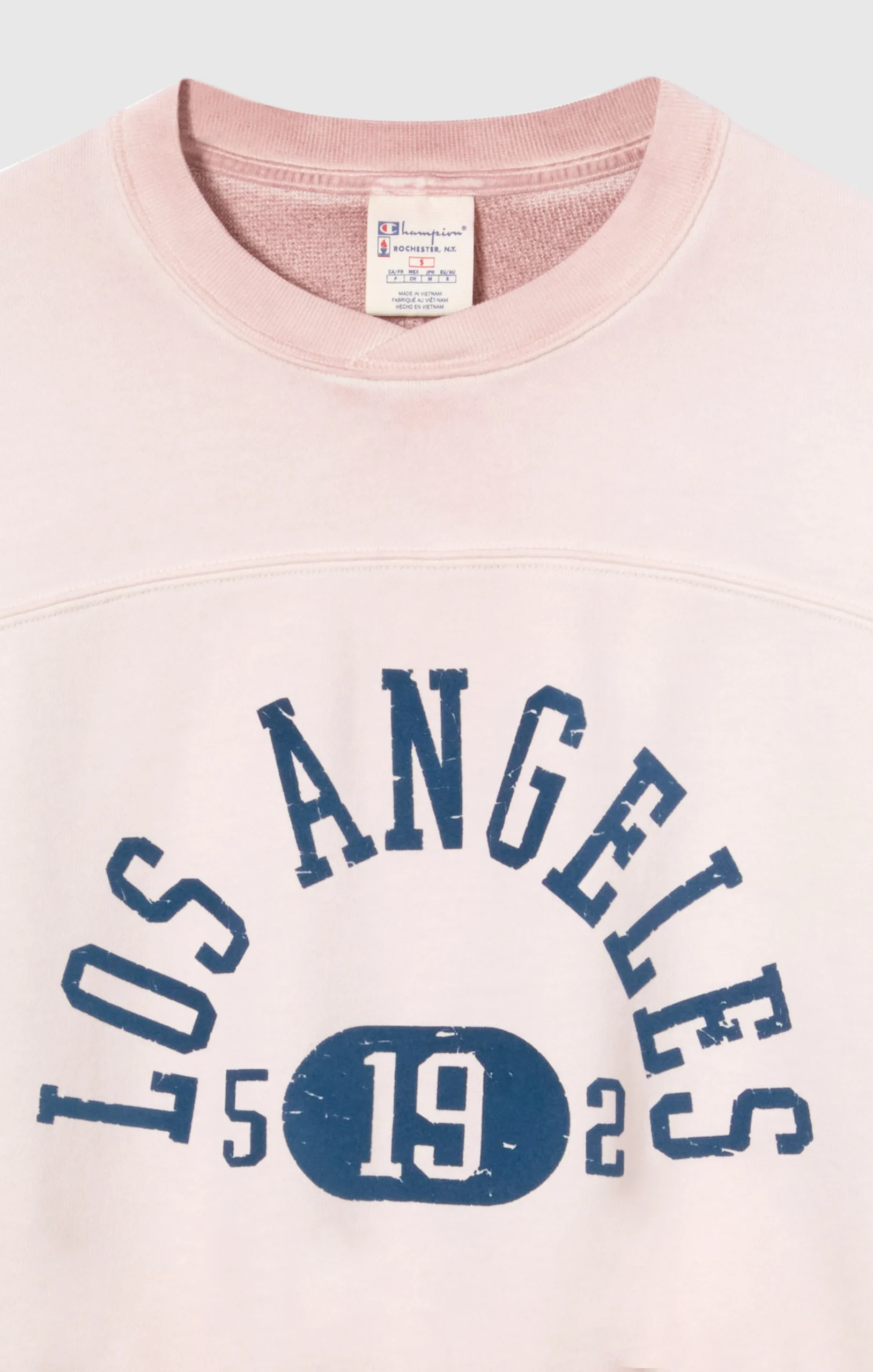 Inspired by the authenticity of archival sports uniforms, this cropped crewneck sweatshirt from the Time Capsule line reinvents heritage style with a contemporary touch. Made from soft heavy cotton, it features a retro-effect flock print. The cropped cut and regular fit make it perfect for everyday wear with a vintage yet modern look.@@@Fabric: Heavy Terry 510 g/m² |Composition: 100% Cotton |Flock print inspired by the Champion archives |Ribbed hem and cuffs |Fit: Standard Fit – versatile and comfortable with standard widths and lengths. Close to the body with simple lines that don’t cling. Regular shoulder cut.