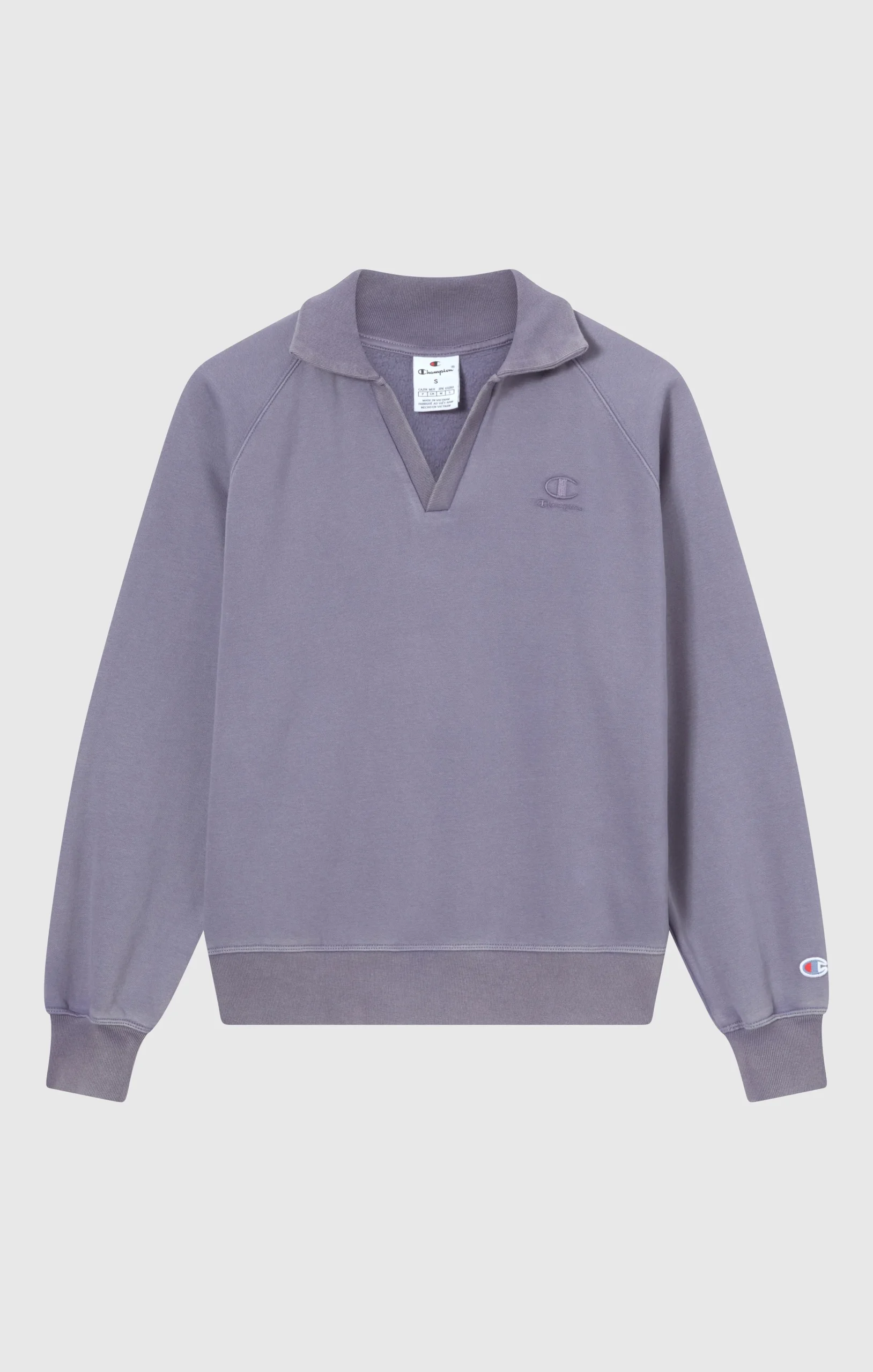 Clean lines, heritage details, and a washed effect that tells a story: this polo collar sweatshirt is a modern reinterpretation of a timeless icon. The washed finish adds depth to the color and enhances seams and edges, while the tone-on-tone logo underscores Champion’s authenticity. Brushed interior ensures extra comfort.@@@Fabric: Heavy compact and soft fleece – 310 g/m² |Composition: 70% Cotton, 30% Polyester |Brushed interior for superior thermal comfort |Washed finish for a faded effect |Mineral Wash treatment for a worn look |Open polo collar without buttons |Ribbed cuffs and hem |Tone-on-tone embroidered logo on the chest |Fit: Standard Fit – versatile and comfortable with standard widths and lengths. Close to the body with simple lines that don’t cling.