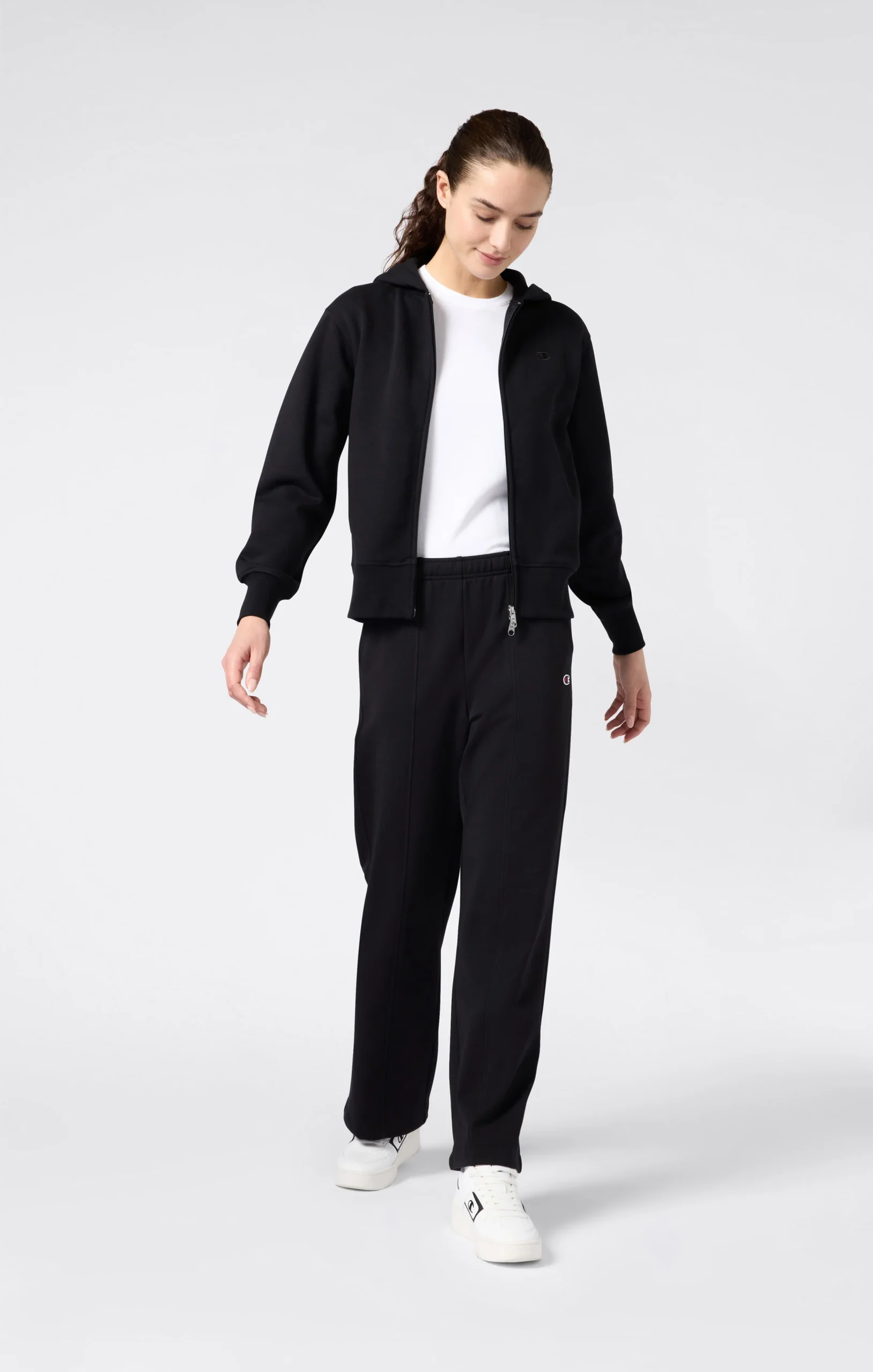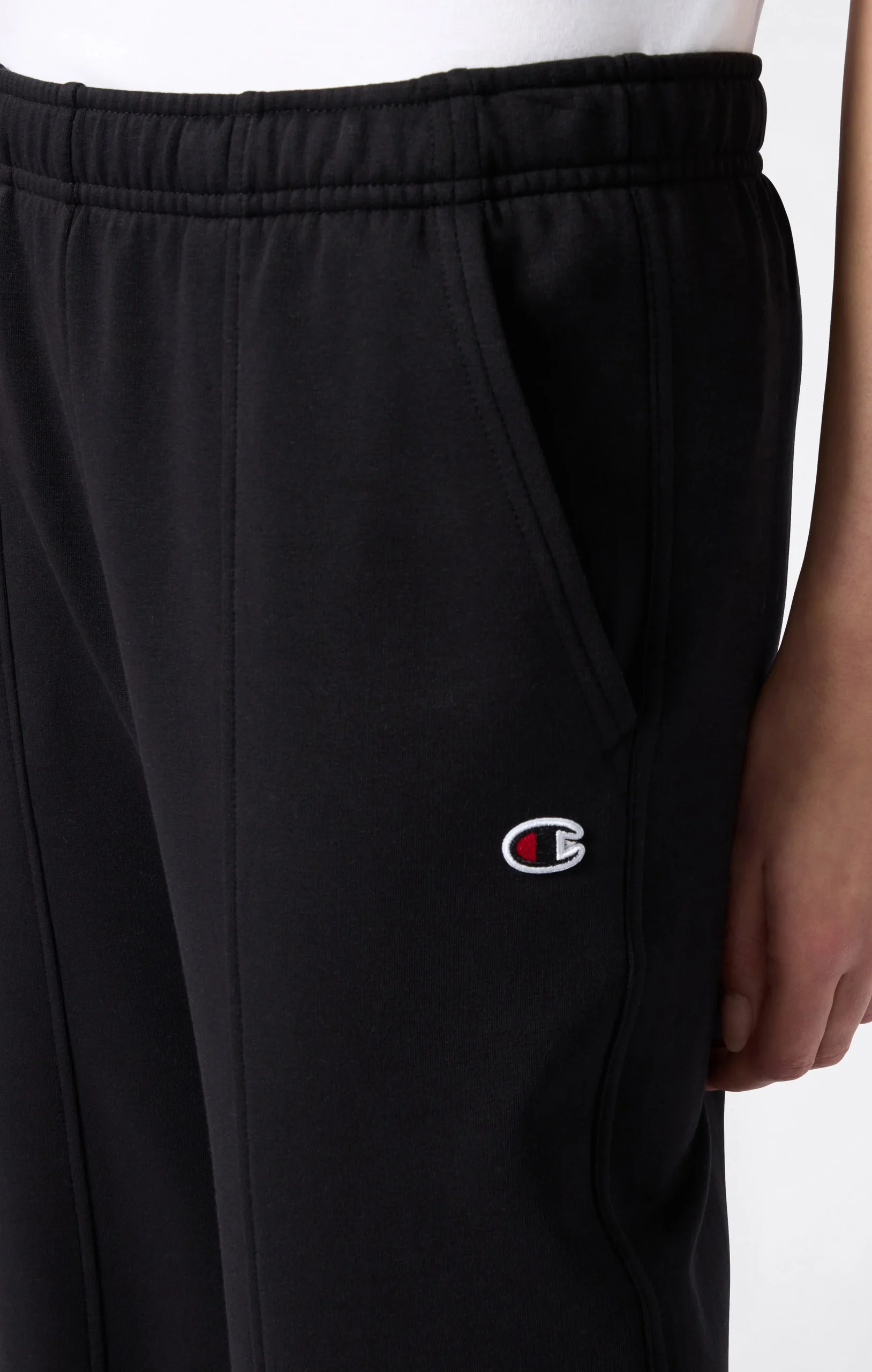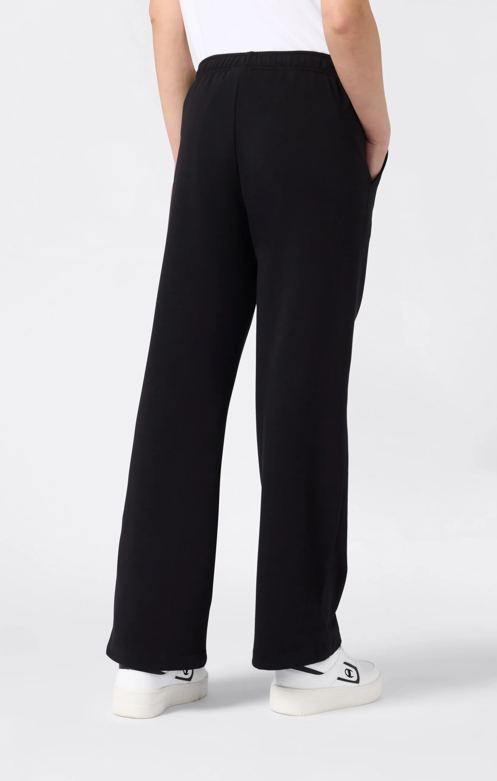 These Champion wide leg pants are part of the Icons line, which brings the brand’s timeless classics into a modern context. Made from TCV Stretch French Fleece (260 g/m²) with a brushed inside, they offer softness and elastic comfort for everyday wear. The wide leg cut gives a contemporary and feminine look, while the elastic waistband and side pockets ensure practicality. The Standard Fit provides a versatile style that doesn’t cling to the body.@@@Composizione: 80% Cotone, 15% Poliestere, 5% Elastane |Tessuto: TCV Stretch French Fleece |Grammatura: 260 g/m² |Interno felpato |Silhouette: wide leg |Vita elasticizzata |Tasche laterali |Vestibilità: Standard Fit – versatile e confortevole, non segna le forme
